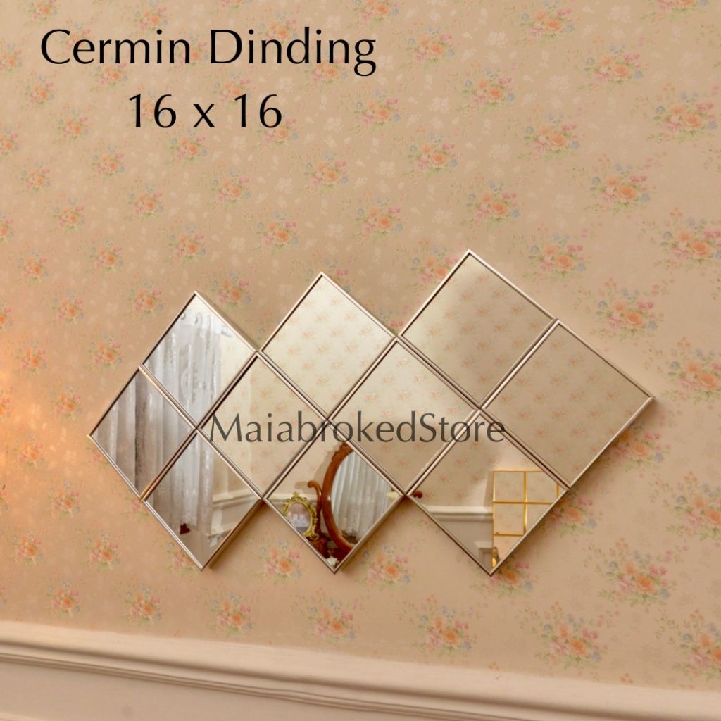 Kaca Cermin Aesthetic kotak Persegi Frameles tempel dinding 16x16