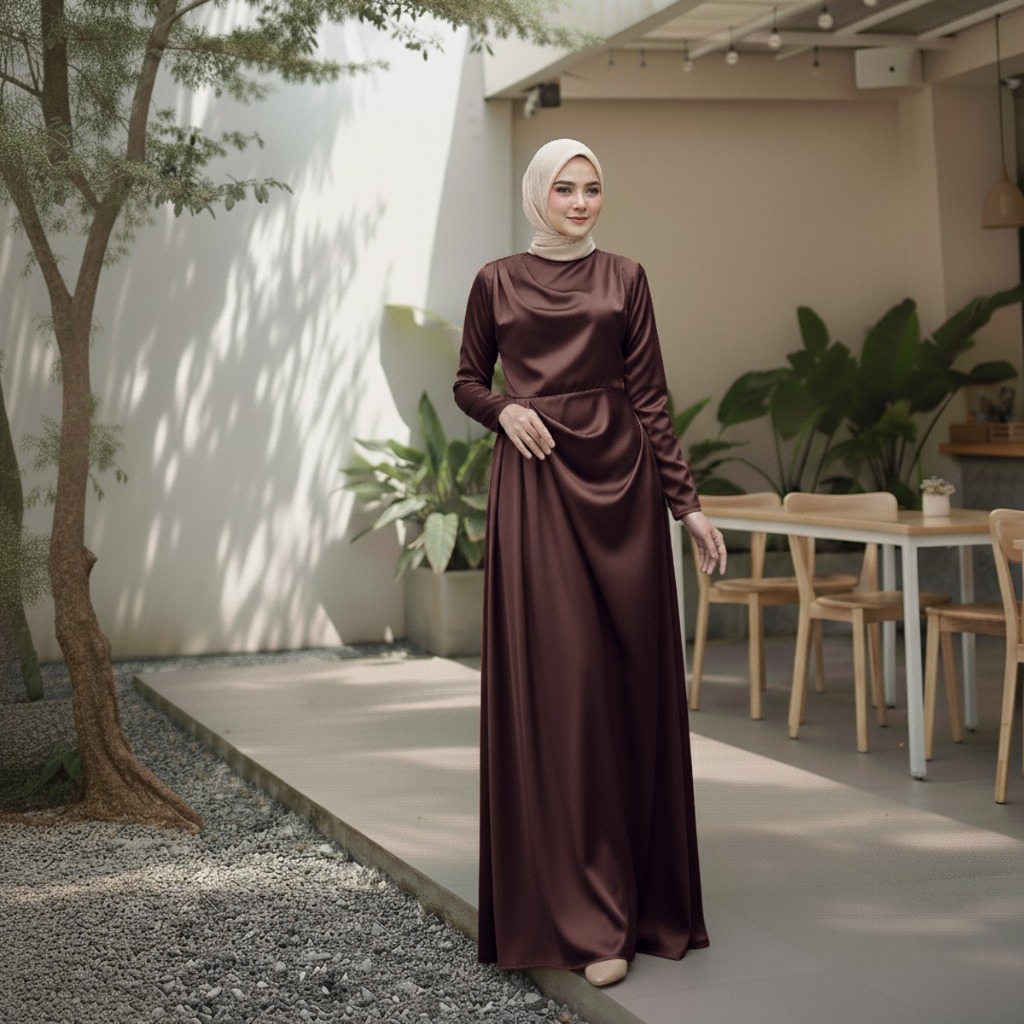 RMD18 | Gamis Kekinian Dress Ashifa Bahan Satin Velvet Kekinian Mewah dan Elegan | Dress Lebaran
