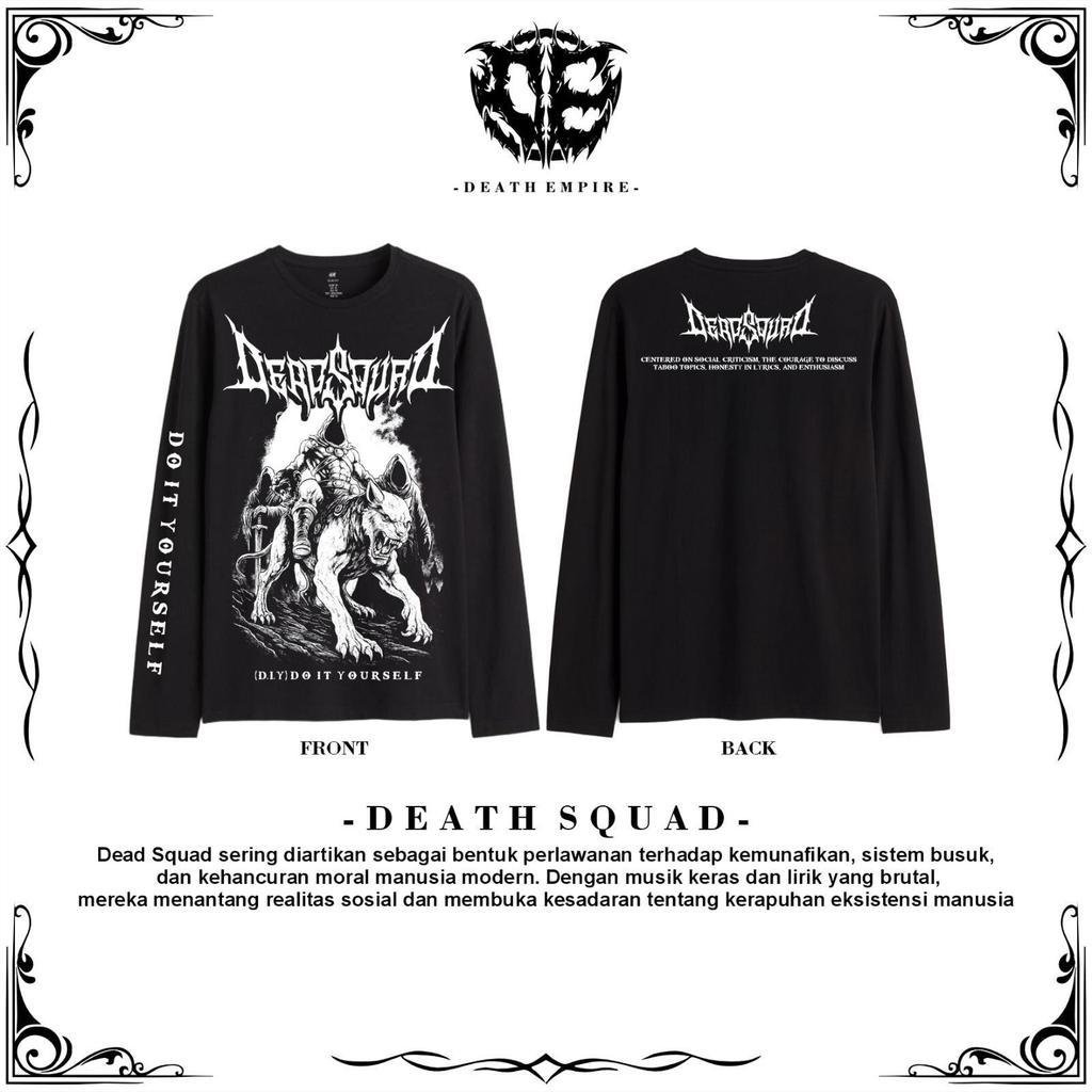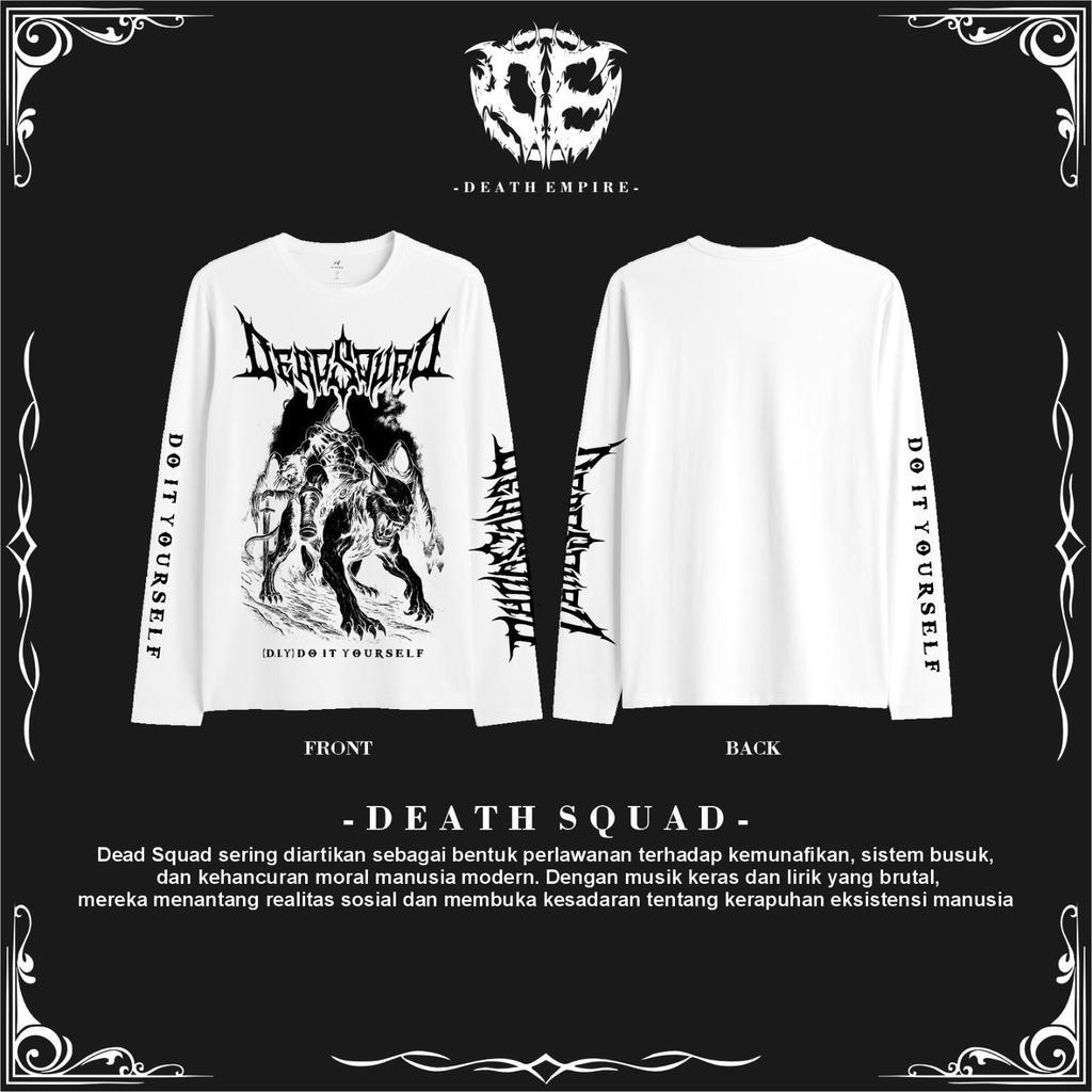 Kaos Longsleeve Netral Death Squad Model Lengan Panjang Casual Fashion Kalcer Metal Pria Wanita Distro Hitam Putih EB4