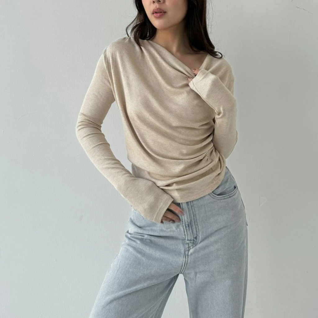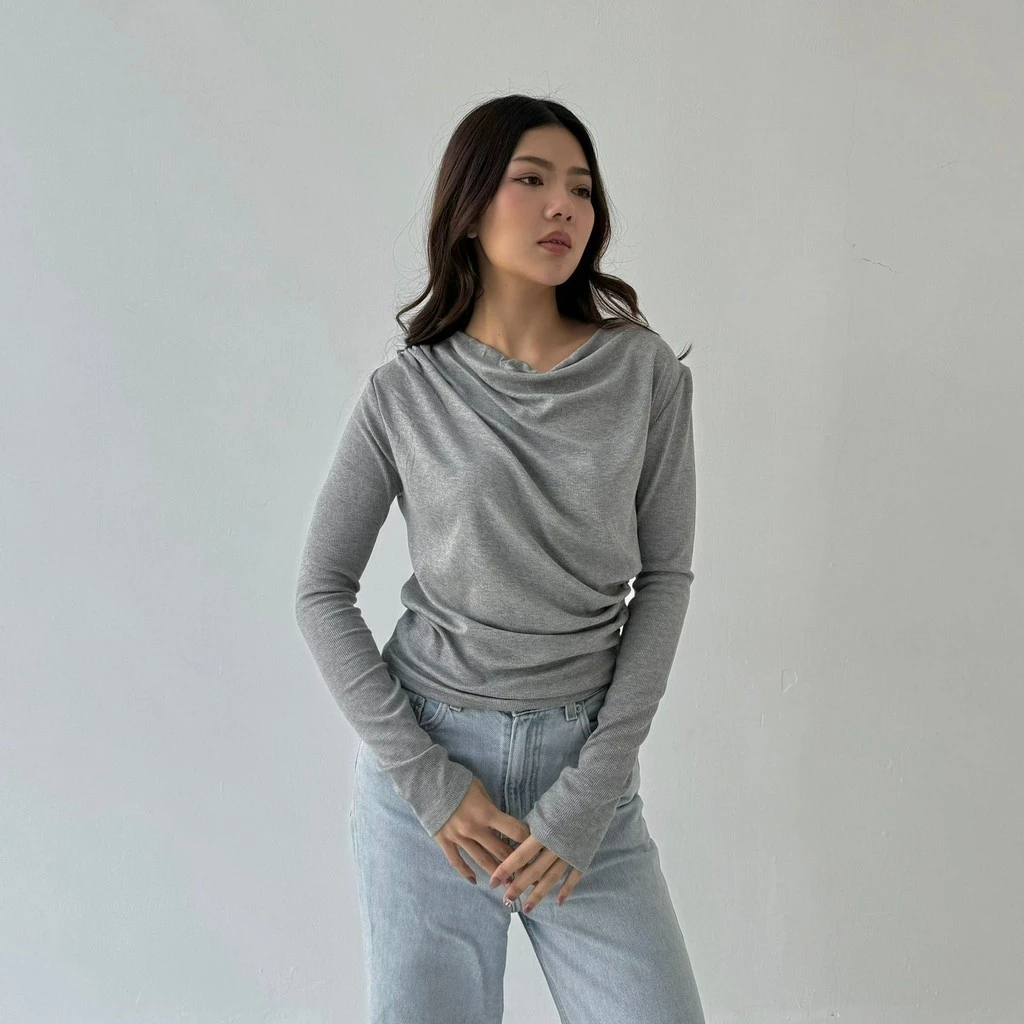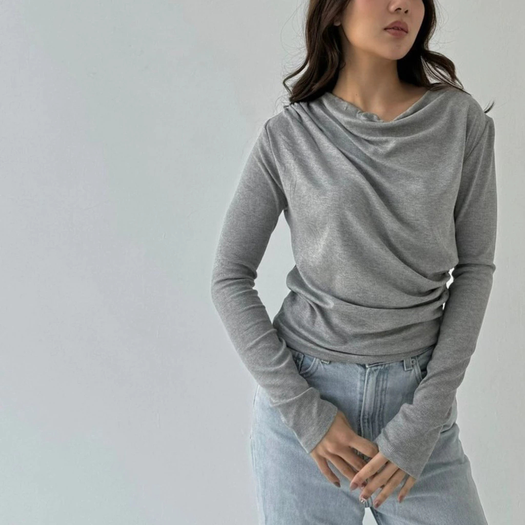 CLARA - April Top Knit Atasan Wanita Korean Top Lengan Panjang Knit Basic Long Sleeve