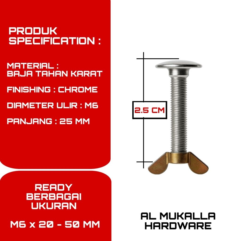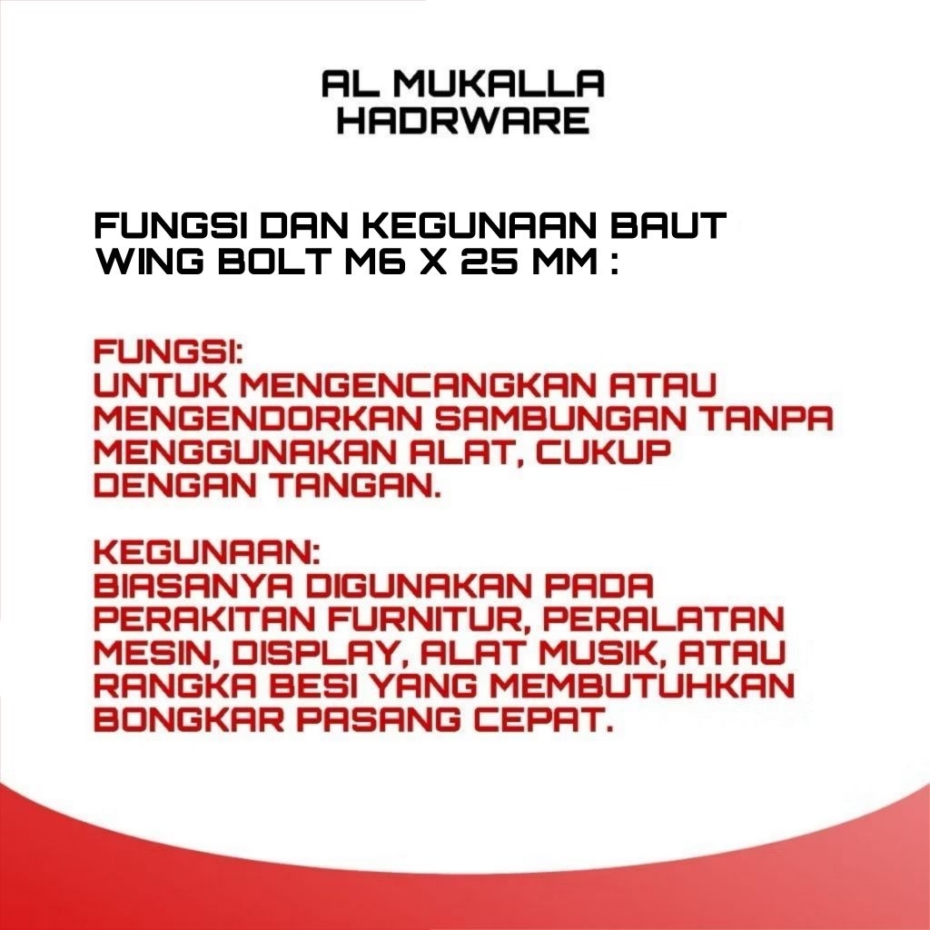 M6 X 25 Wing Bolt Baut Kupu / Butterfly / Kuping | Baut Kupu - Kupu M6 | Wing Bolt M6