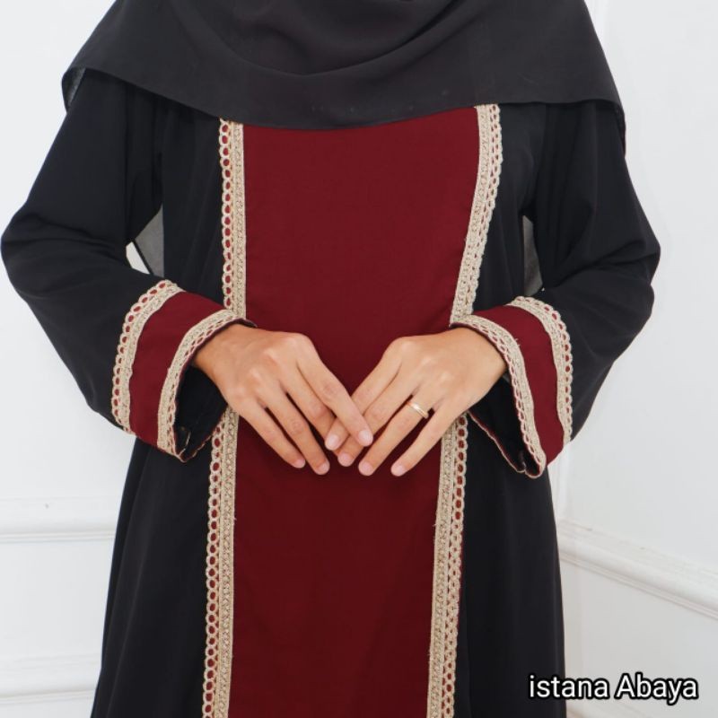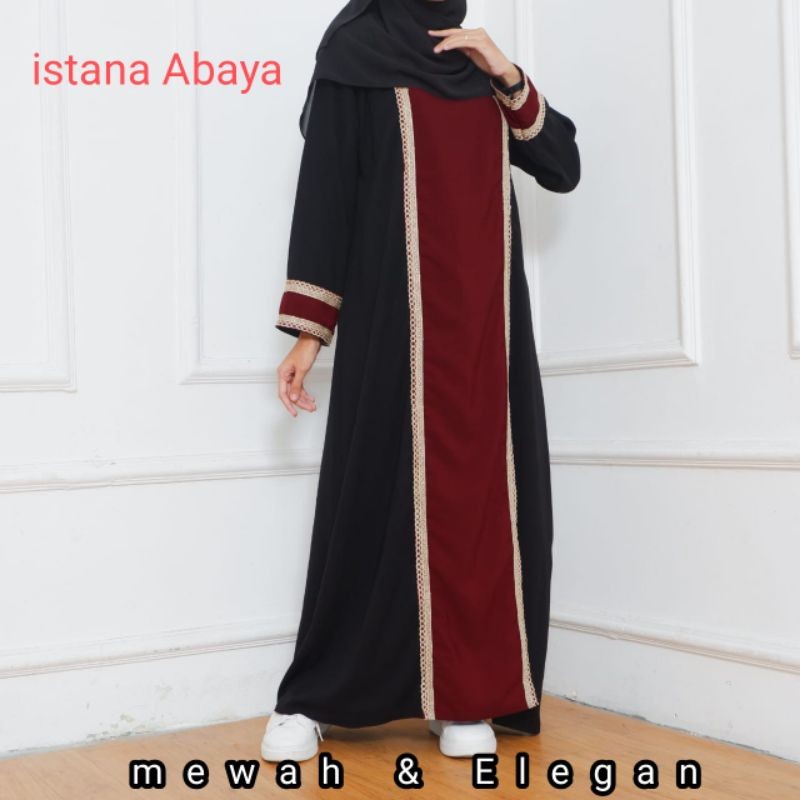 WADAindashopSatu Lagi Abaya Aplikasi Hitam Marron Dg Aksen Pita Rajut Emas Elegan Terbaru Dari Istana Abaya