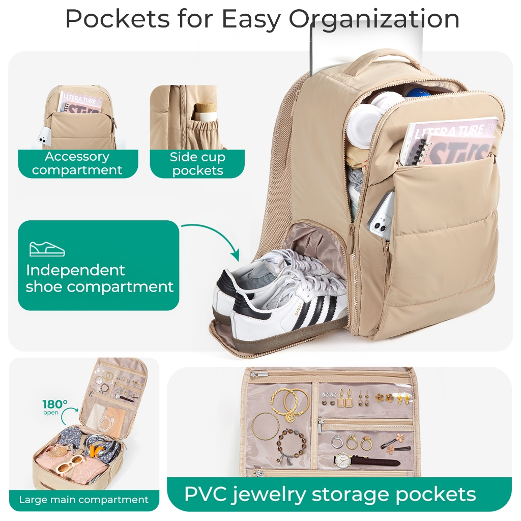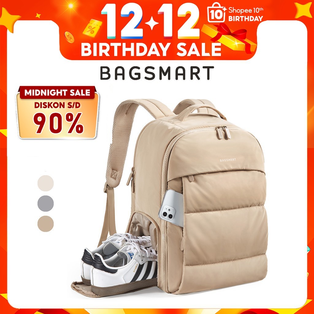 BAGSMART Ransel Backpack 30L Travel Puffy 15.6Inch Laptop Serbaguna Anti Air Slot Sepatu Duffel Bag