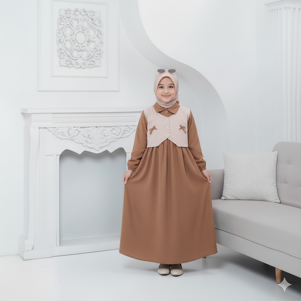 Gamis Muslim Rompi Anak Perempuan Remaja Terbaru Usia 2-10 Tahun Model Blezer Simple Lucu