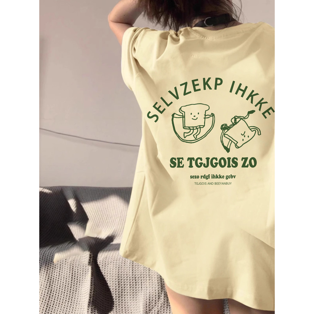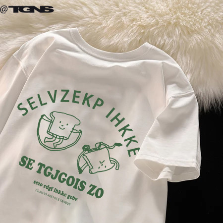 TGNS. 100% cotton kaos cute bread Korean style t shirt kaos oversize wanita baju bigsize lengan pendek retro Vintage kaos /138