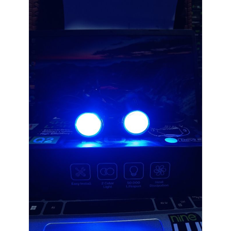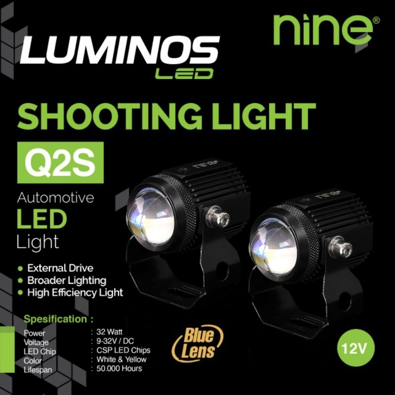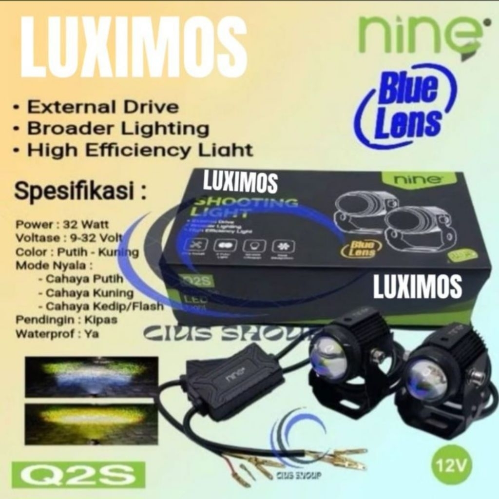 LAMPU SOROT/TEMBAK Q2S BLUE LENS 2 WARNA BISA KEDIP FLASH WHITE YELLOW MINI SHOOTING LIGHT 32WATT LASER TEMBUS KABUT MOTOR MOBIL ORIGINAL LUXIMOS NINE