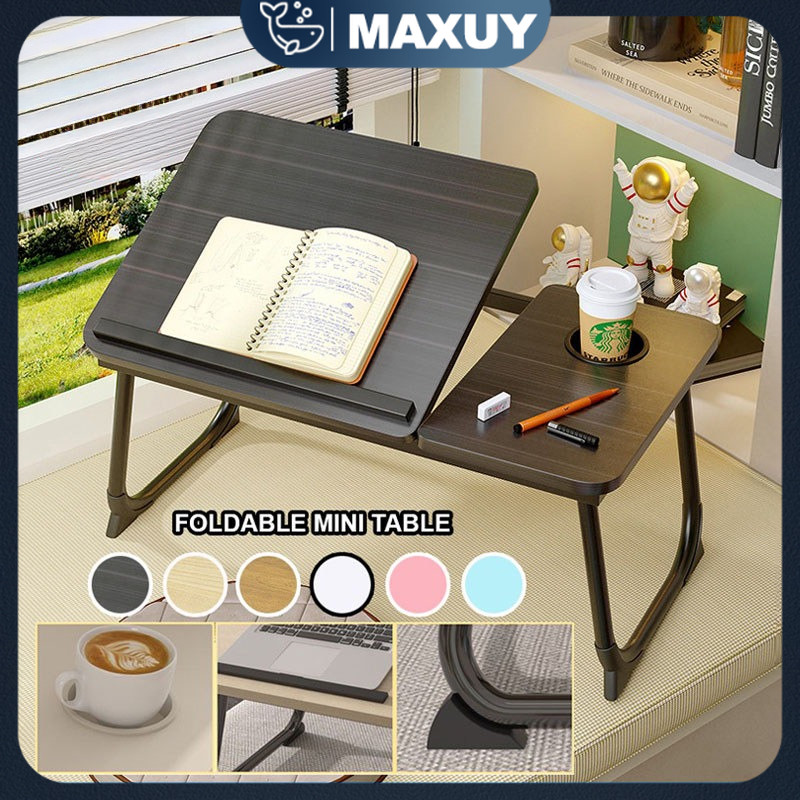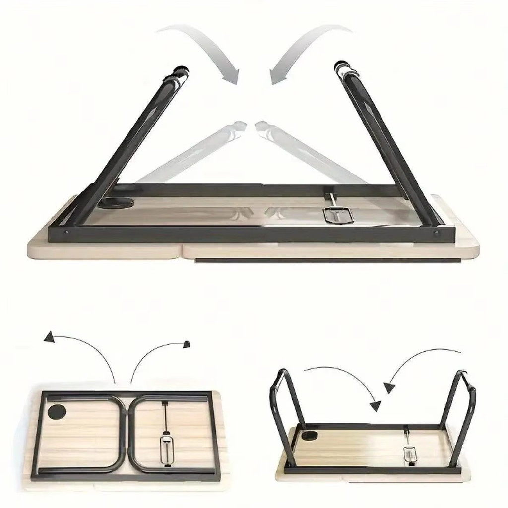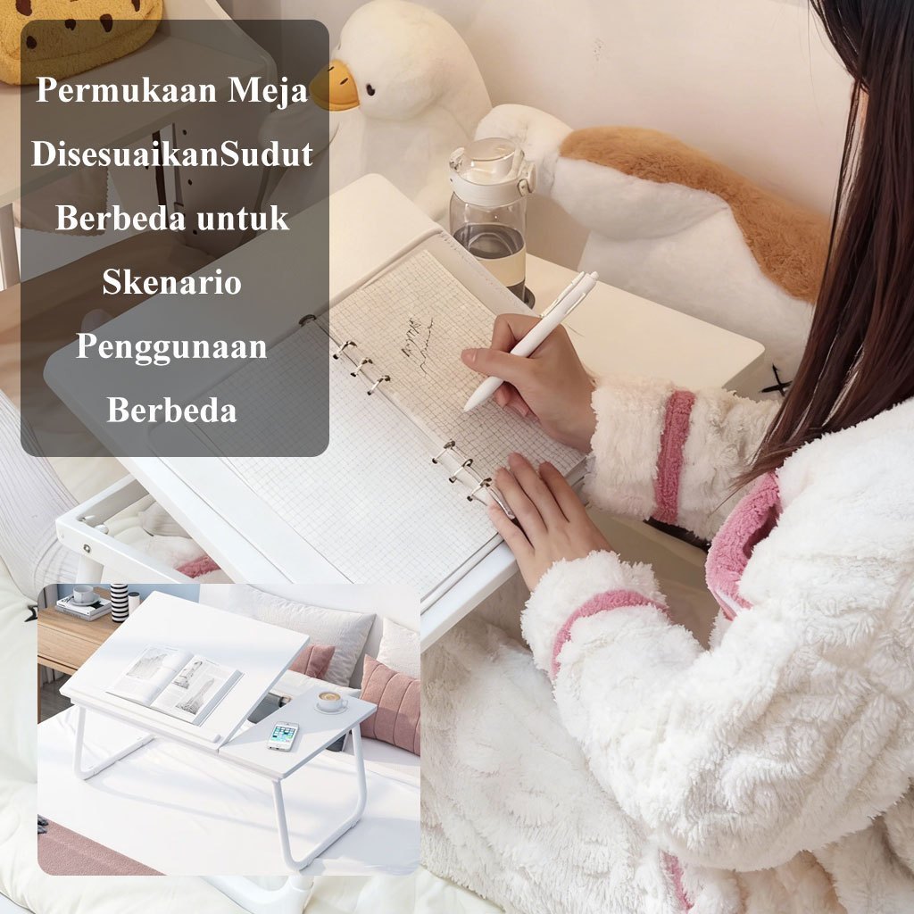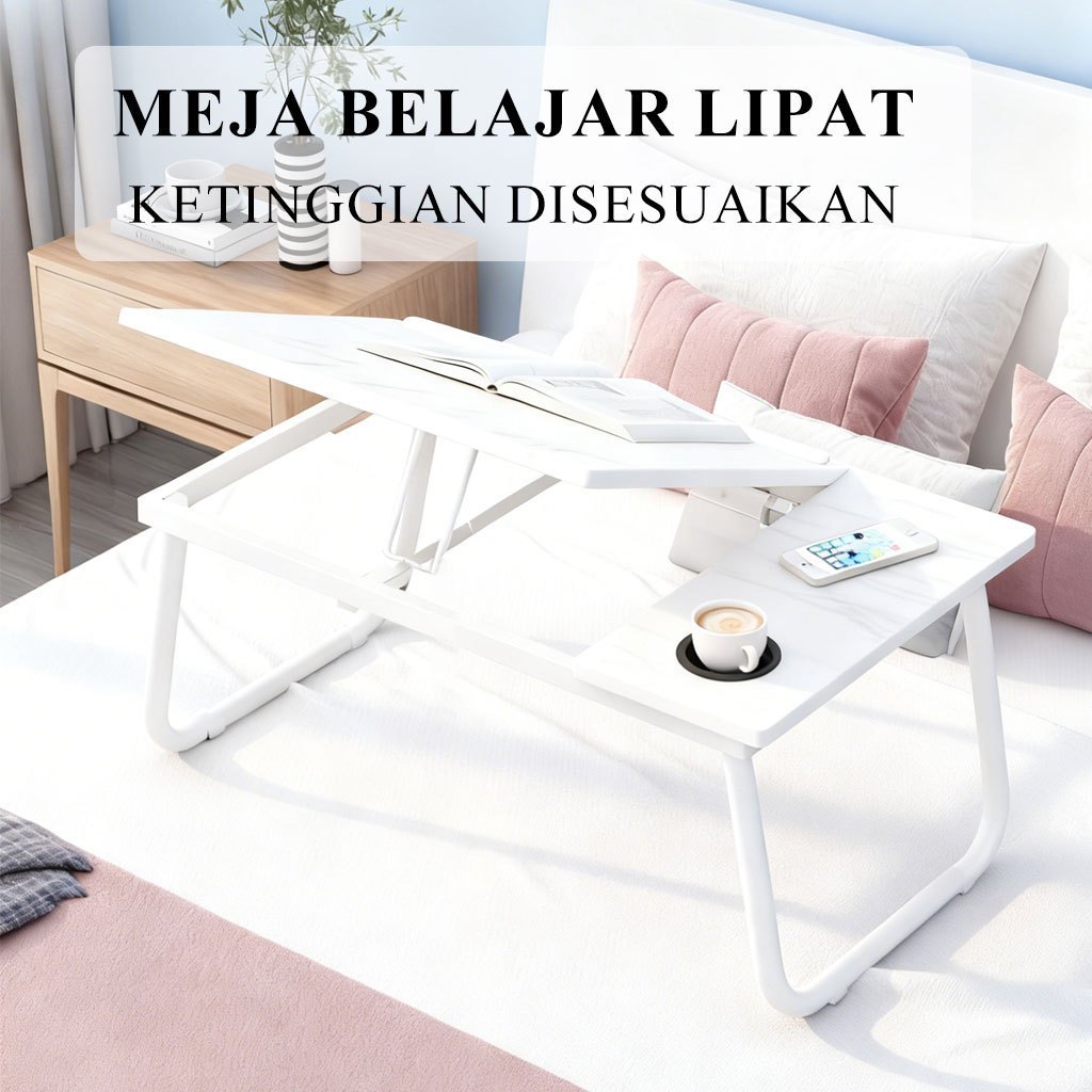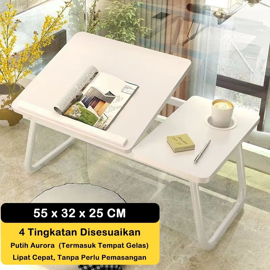 MEJA LAPTOP ADJUSTABLE - Meja Lipat Ergonomis Tinggi Bisa Diatur, Anti Pegal Leher & Punggung, Untuk Kerja/Belajar Di Kasur/Kursi (Bonus Tempat Gelas)