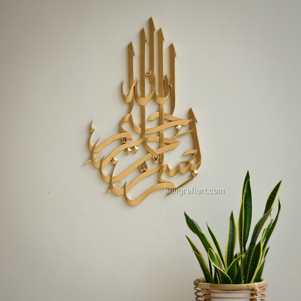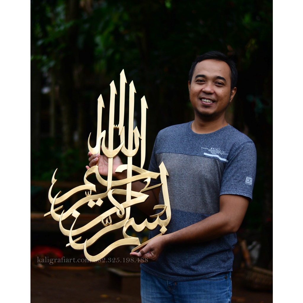 Hiasan Dinding Kaligrafi Ukir Kayu Lafal Basmalah Frameless