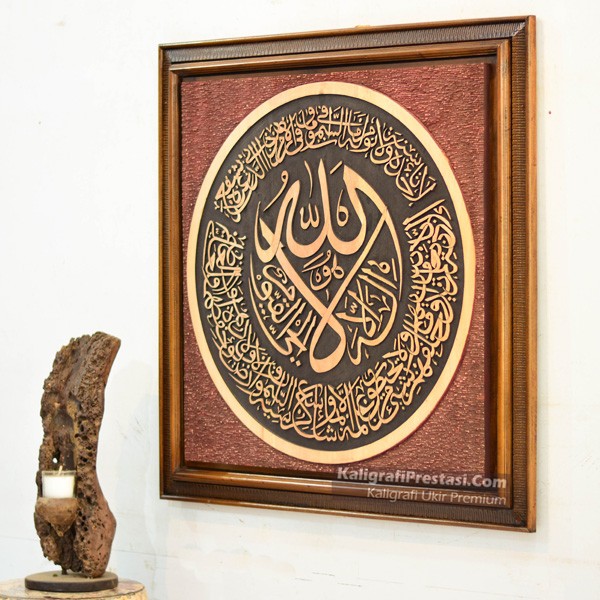 Kaligrafi Ayat Kursi Ukir Timbul Kayu Jati / Mahoni