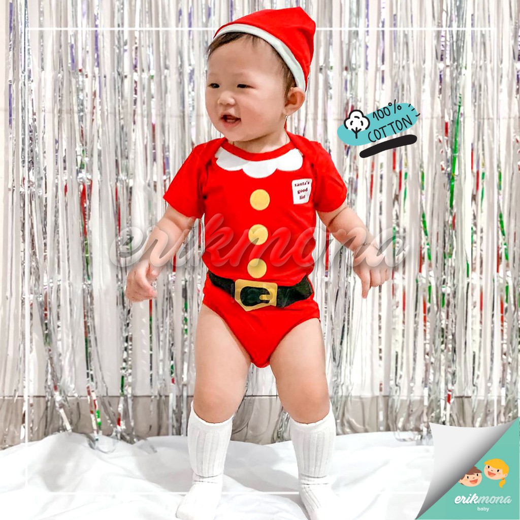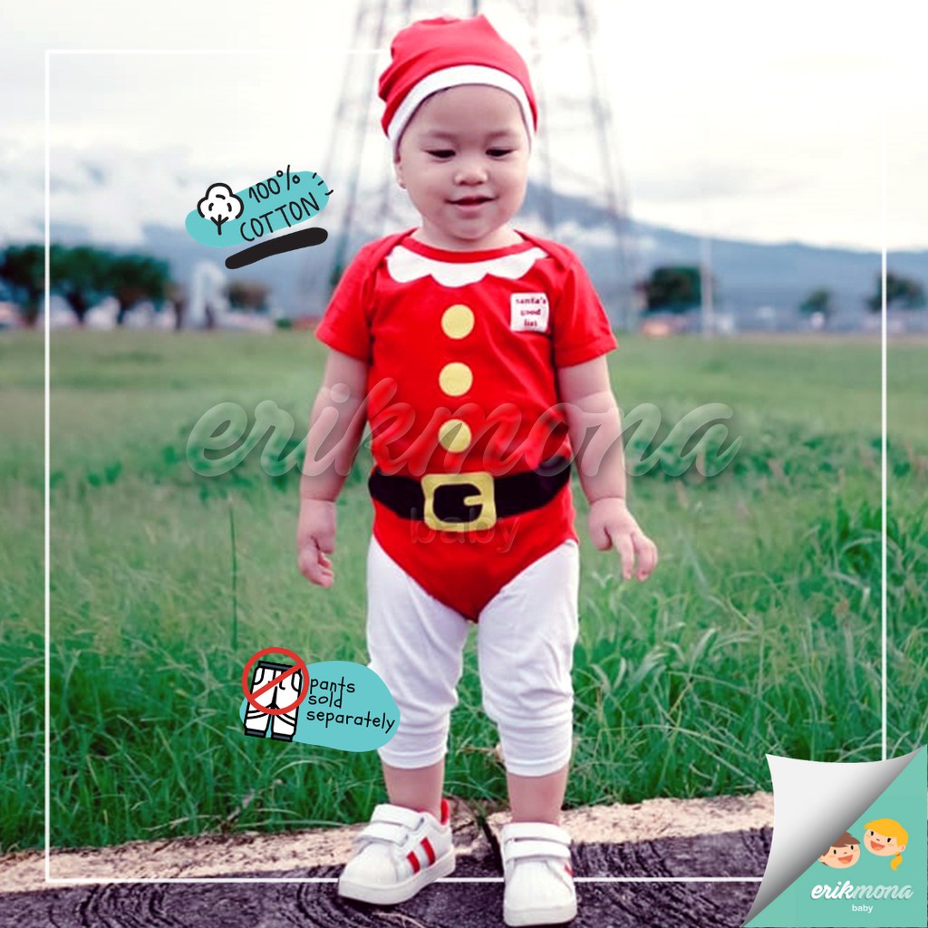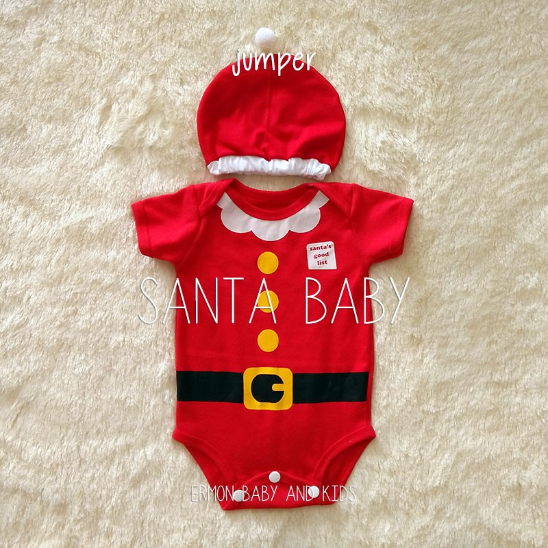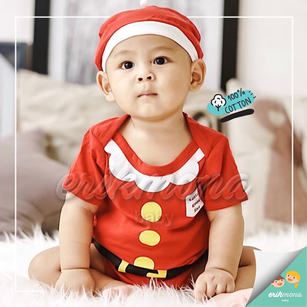 Ermon Baby - Jumper Bayi Laki Laki Perempuan Jumper Baby Cowok Cewek Lucu Karakter Santa + Topi Usia 0 - 12 Bulan