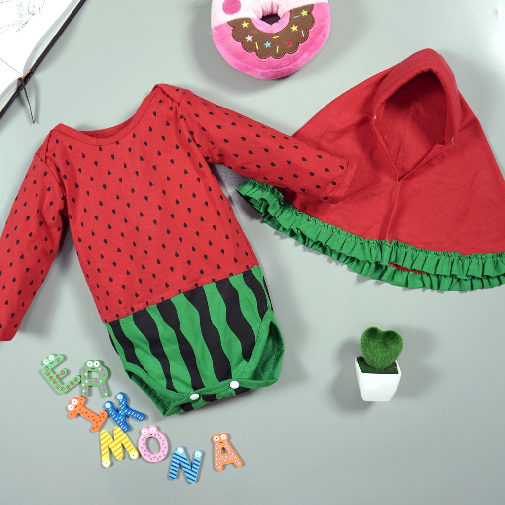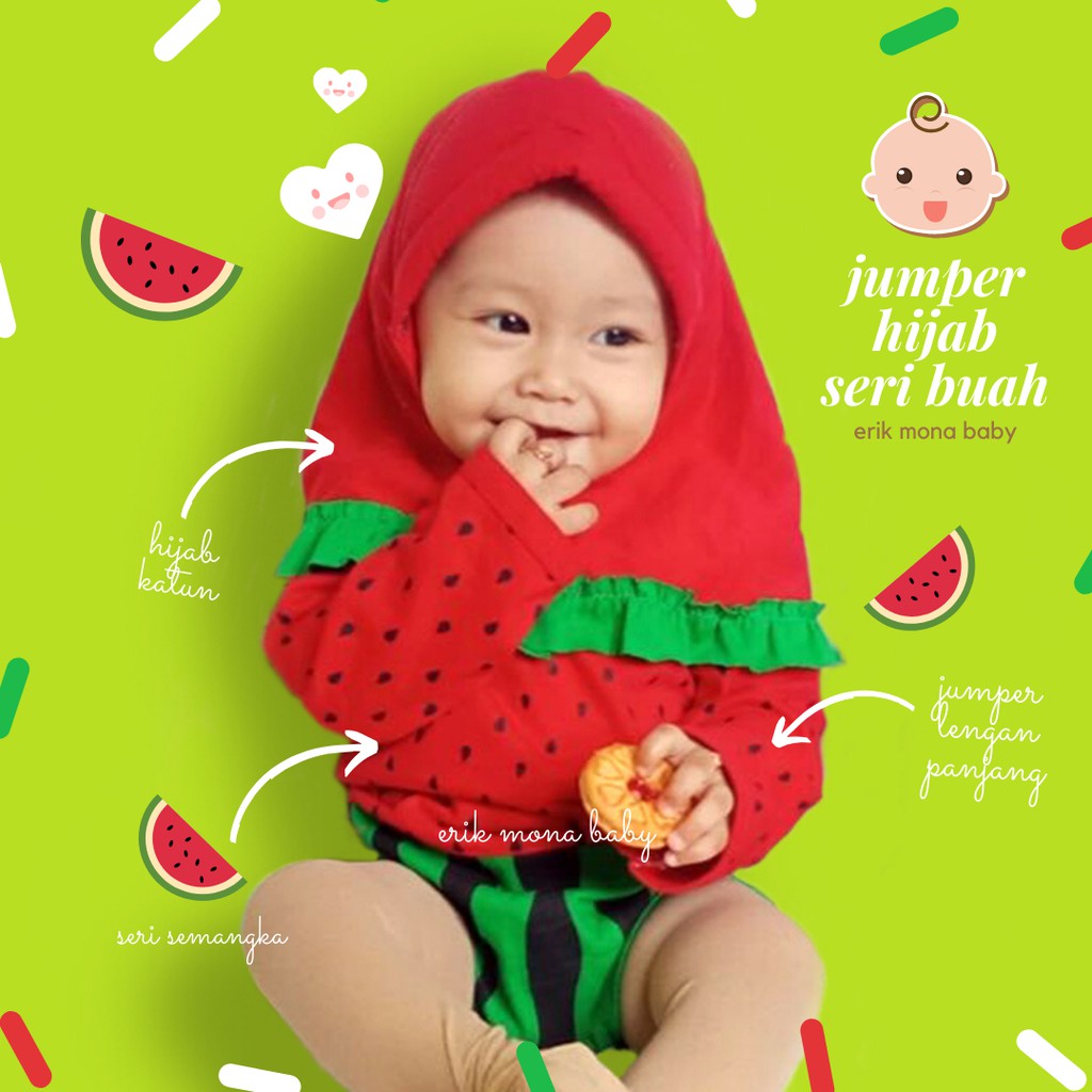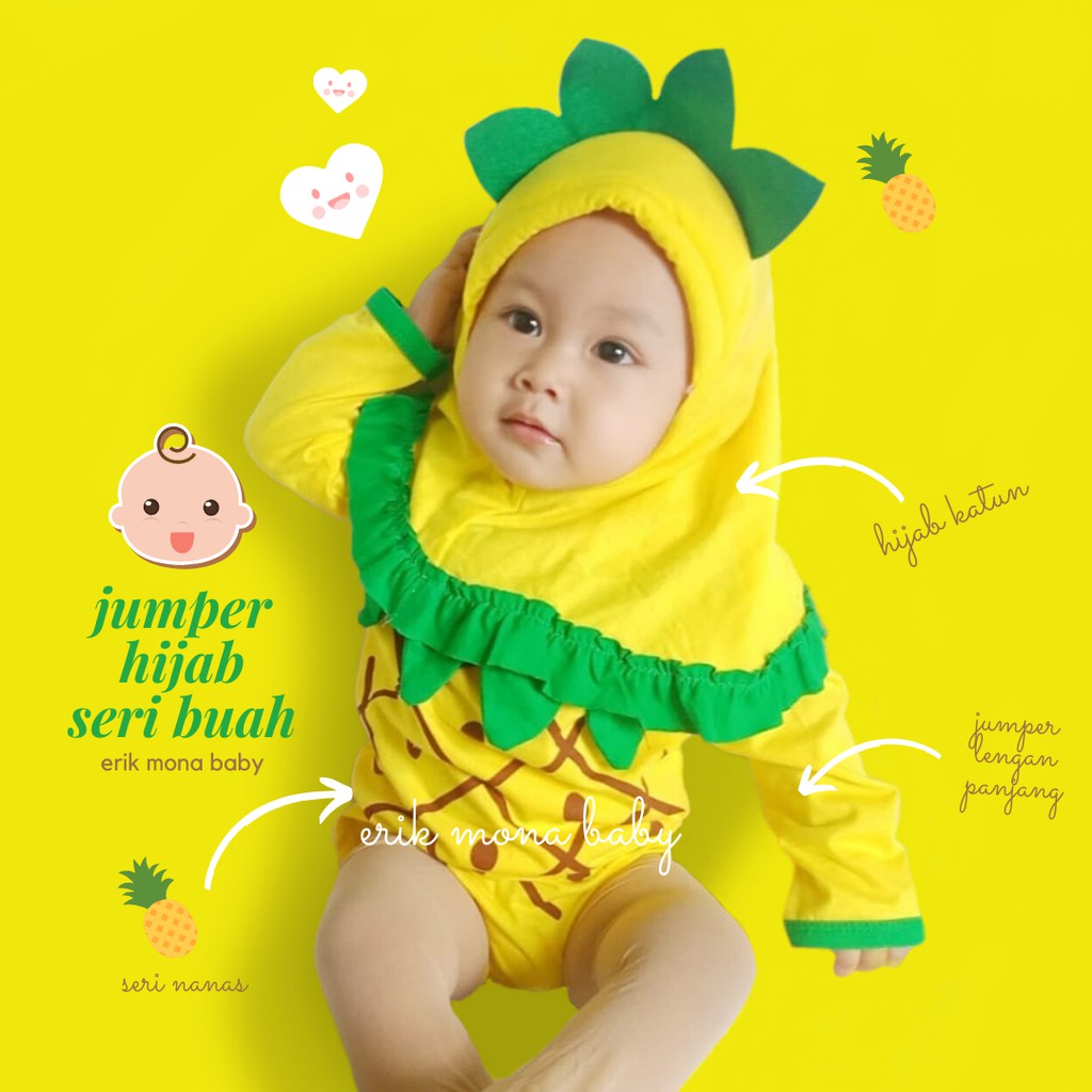 Ermon Baby - Jumper Hijab Bayi Perempuan Jumper Baby Cewek Lucu Model Buah Nanas Semangka Strawberry + Hijab / jilbab Usia 0 - 12 Bulan
