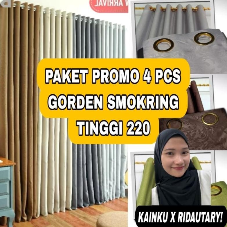 NI06 KAINKU X RIDAUTARY - PROMO 4 PCS GORDEN JENDELA DAN PINTU MINIMALIS SMOKRING 10 LUBANG TINGGI 150 DAN 220 Murah