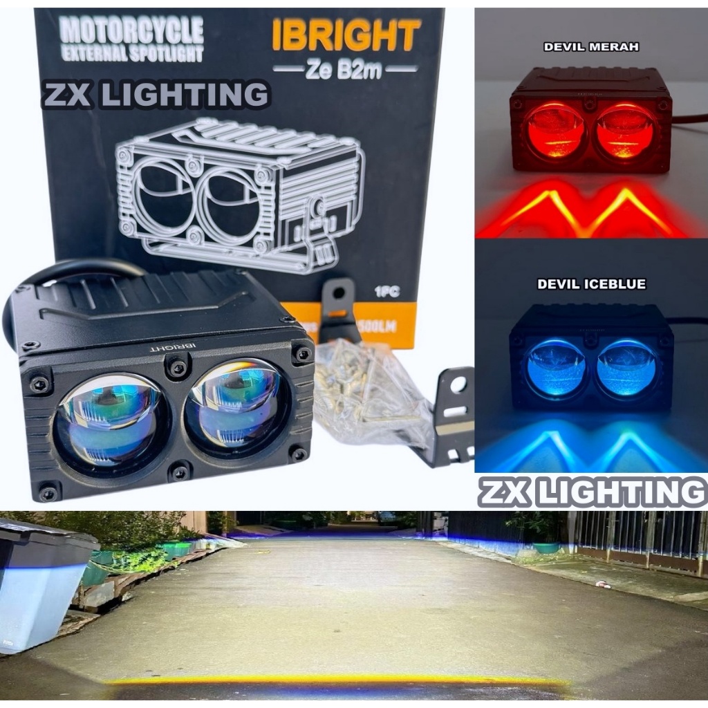 Lampu Tembak Ibright Ze B2m 2 Mata ZE B2M Bluelens Cut Off Rapi Biled 2 Kipas Pendingin Devil eyes