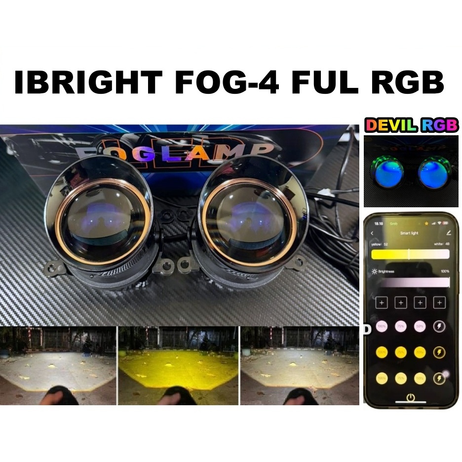 Foglamp Ibright Fog4 Full Rgb Apps Blue-Lens 3Inchi Waterproof Sepasang
