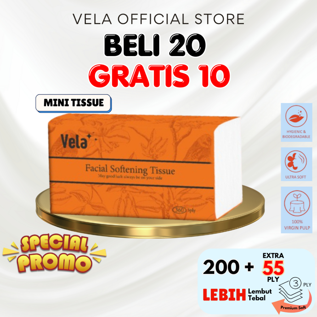 [BELI 20 GRATIS 10] VELA Mini Tissue 3 Ply 255 Sheets – Tisu Elegan Serbaguna untuk Wajah, Mobil, Ibu & Anak | Tisu Tebal & Lucu | Best Seller | Promo Gratis Ongkir & COD
