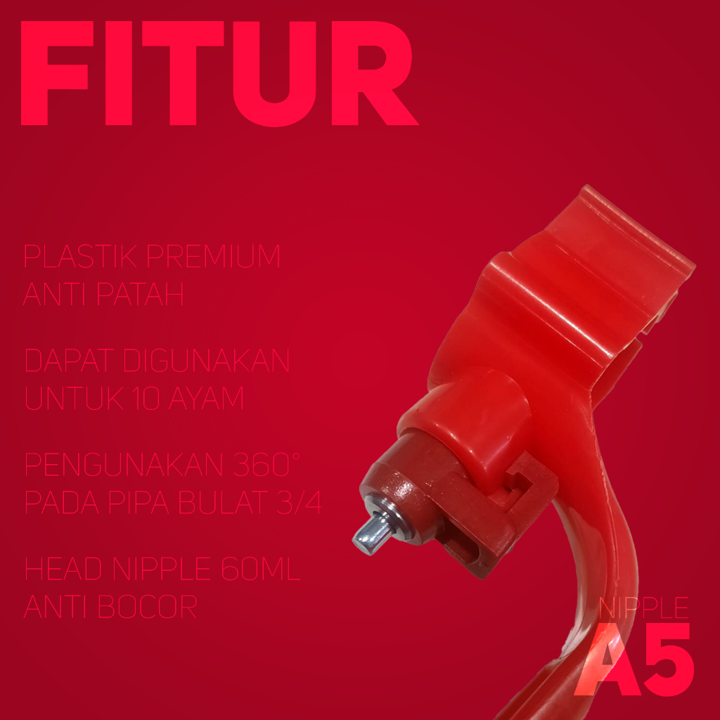 Nipple + Dripcup Ayam/Pipa Bulat/Tempat Minum Ayam/Nipel/ Niple/Nippel/Nipple/Nepel Ayam A5 - Alat Ternak Kandang Ayam