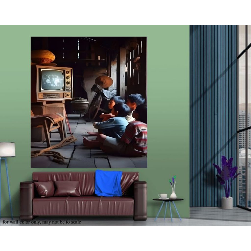 poster cetak gambar,ANAK KECIL SEDANG MENONTON TV,extra jumbo,lukisan cetak,hiasan dinding ruang tamu,tanpa bingkai