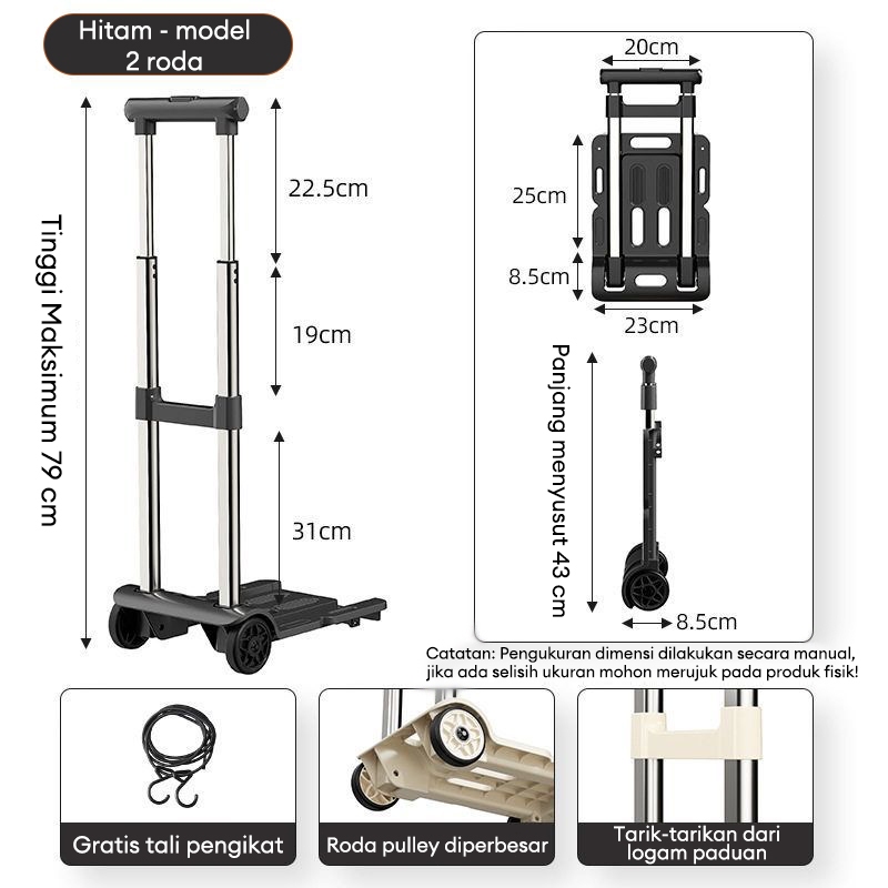 TROLI LIPAT 4RODA UNTUK BELANJA-Stabil&Muat Banyak,Bahan Besi Kuat,Roda Halus Senyap,Simpan di Mobil