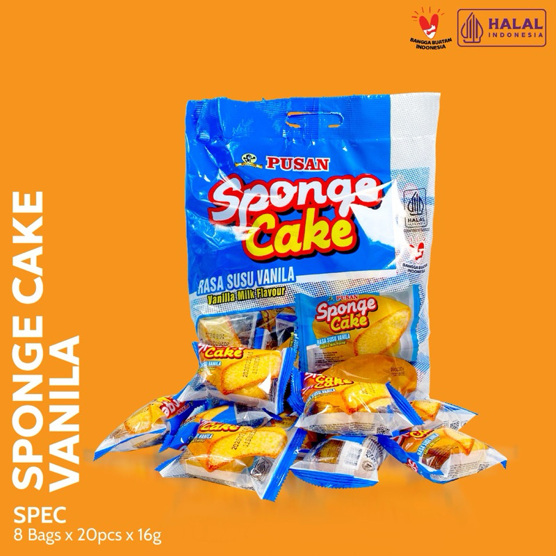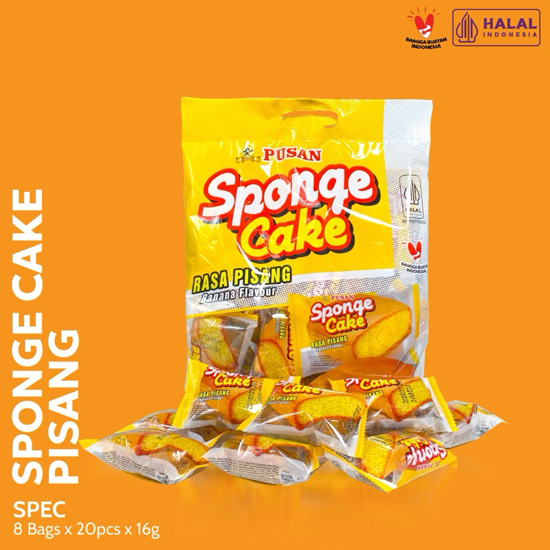 PUSAN BOLU SPONGE CAKE VANILLA / COKELAT / PISANG / PANDAN ISI 20pcs