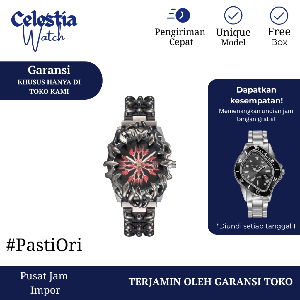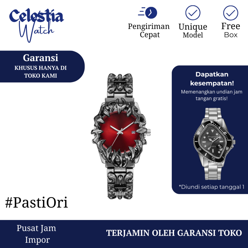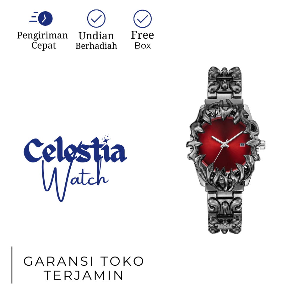 Jam Tangan Unisex Model Gothic Y2K Trend Outfit Model Homage Jam Tangan Quartz Warna Merah