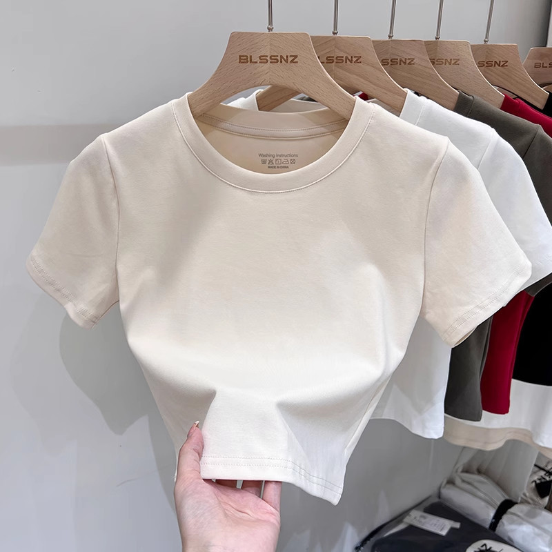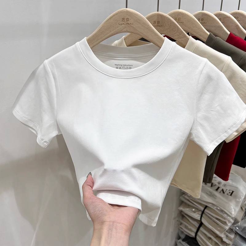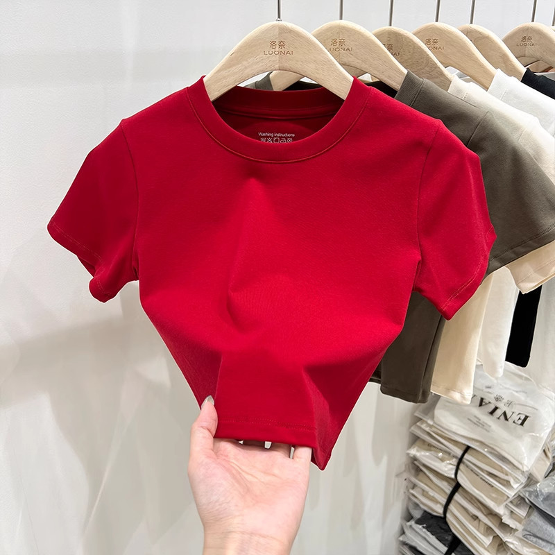 T-shirt stretch slim fit leher bulat pendek/kaos merah/Kaos gaya Korea t shirt
