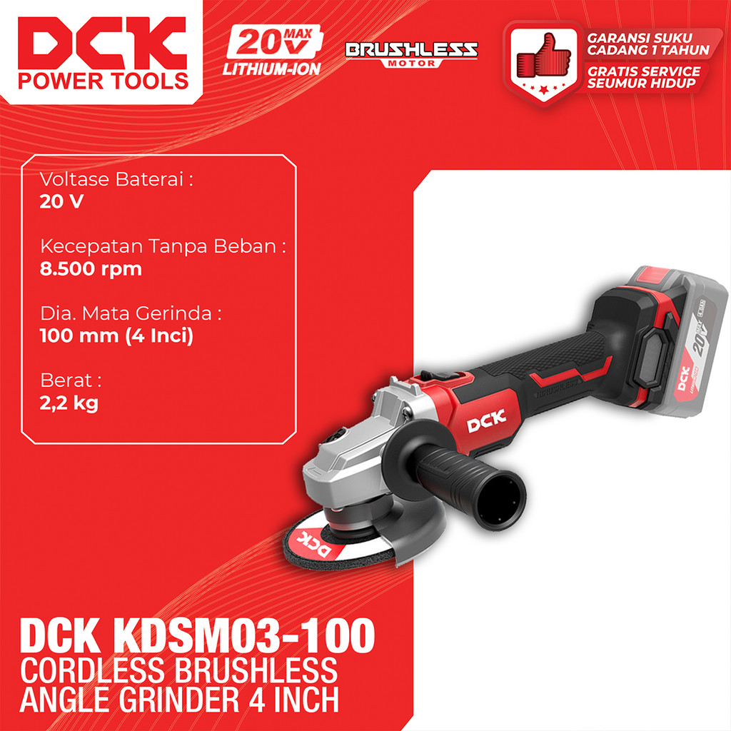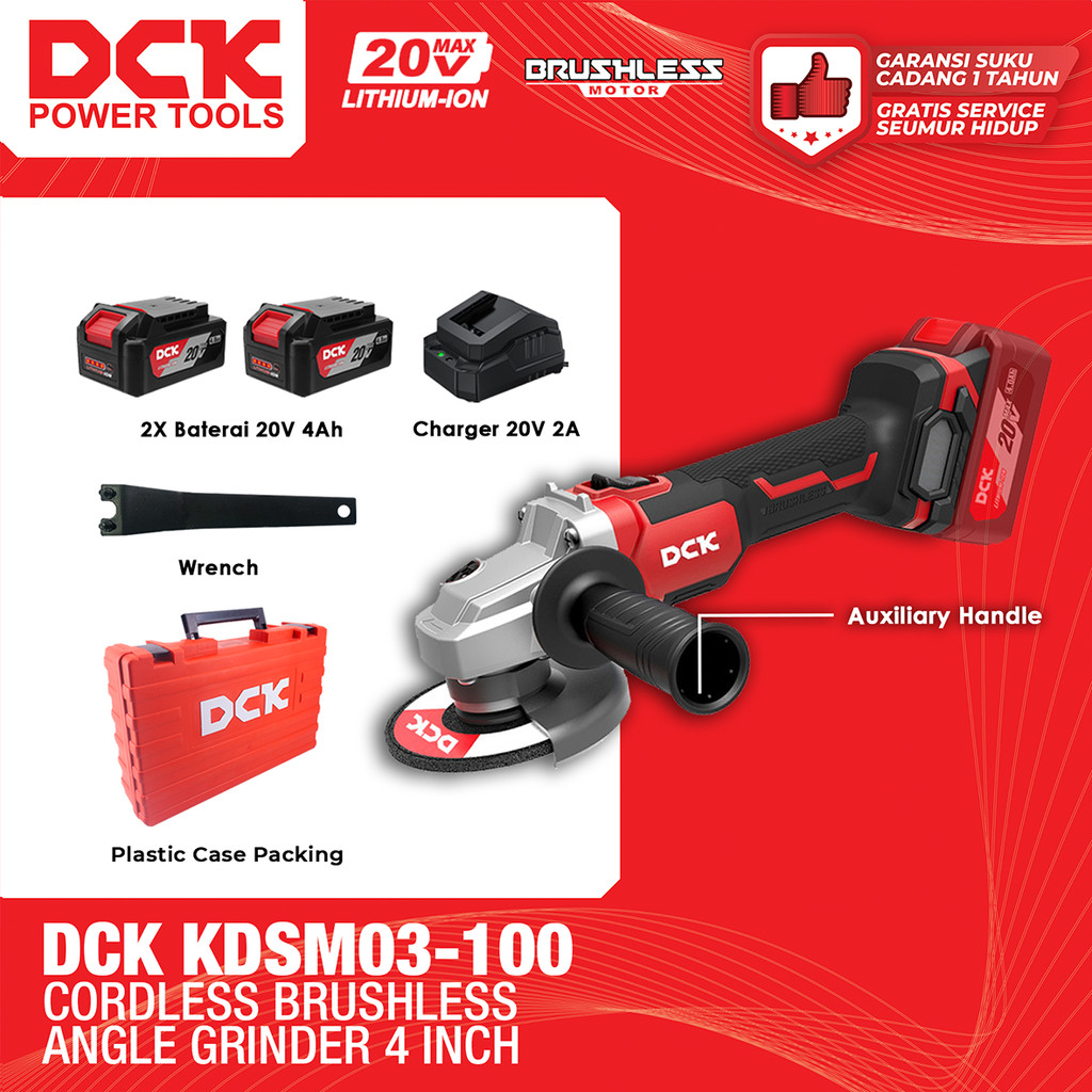 DCK KDSM03-100 Cordless Brushless Angle Grinder 4"