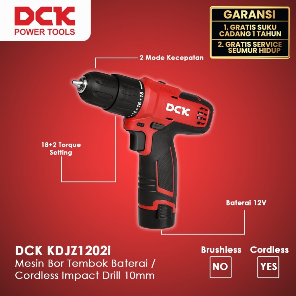 DCK KDJZ1202iE Mesin Bor Tembok Baterai / Cordless Impact Drill 10mm