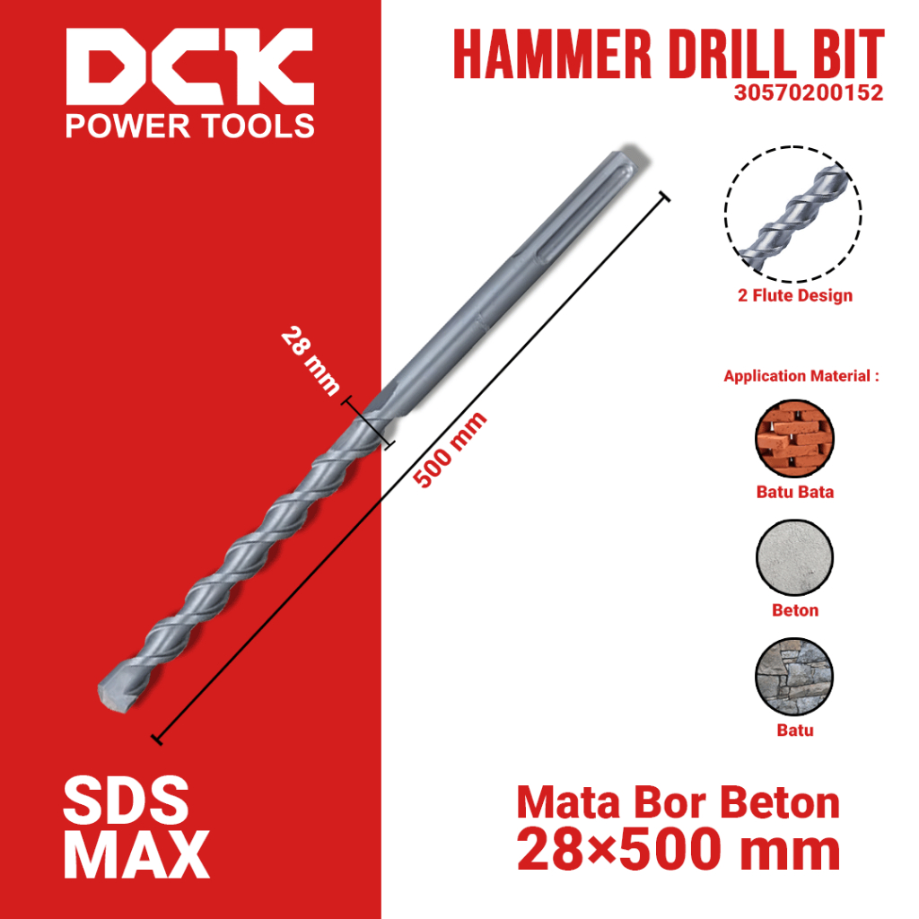 DCK Hammer Drill Bit (SDS-max) / Mata Bor Beton 10, 12, 14, 16, 18, 20, 22, 25, 28, 30, 32 mm