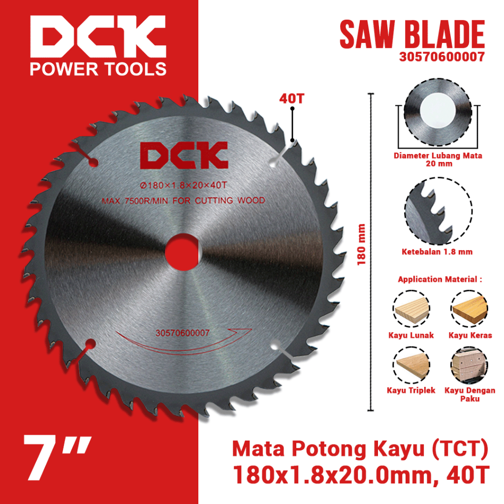 DCK Saw Blade (TCT) 7 Inci / Mata Potong Kayu 180 mm