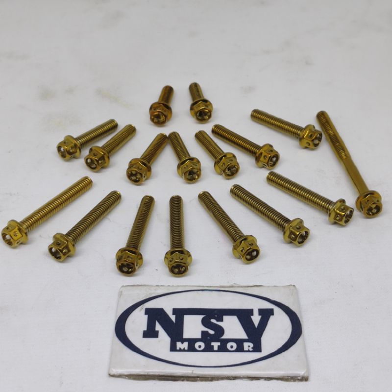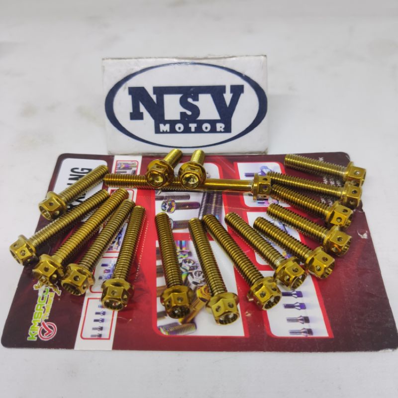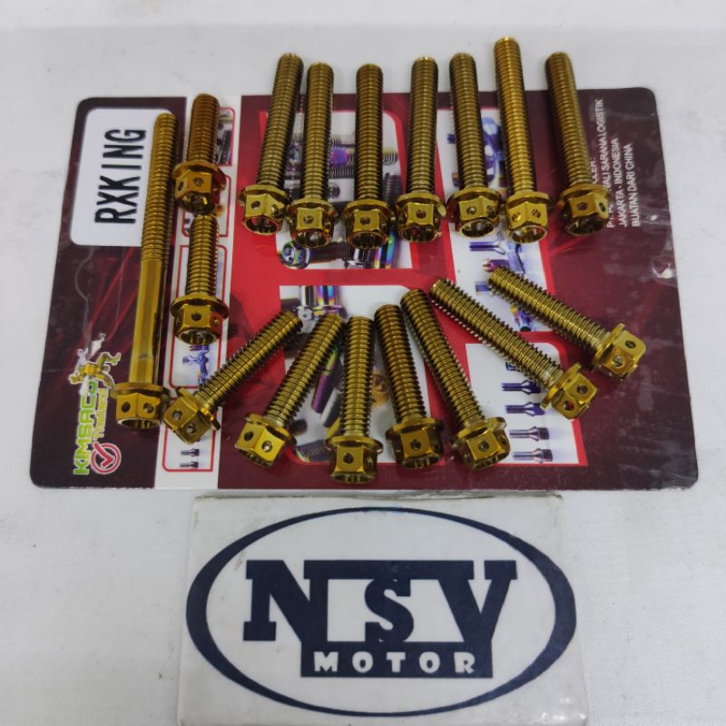 BAUT SET PROBOLT BLOK MESIN RX KING FULL GOLD STAINLESS CNC FLOWER BAUT BAK MESIN KIRI KANAN