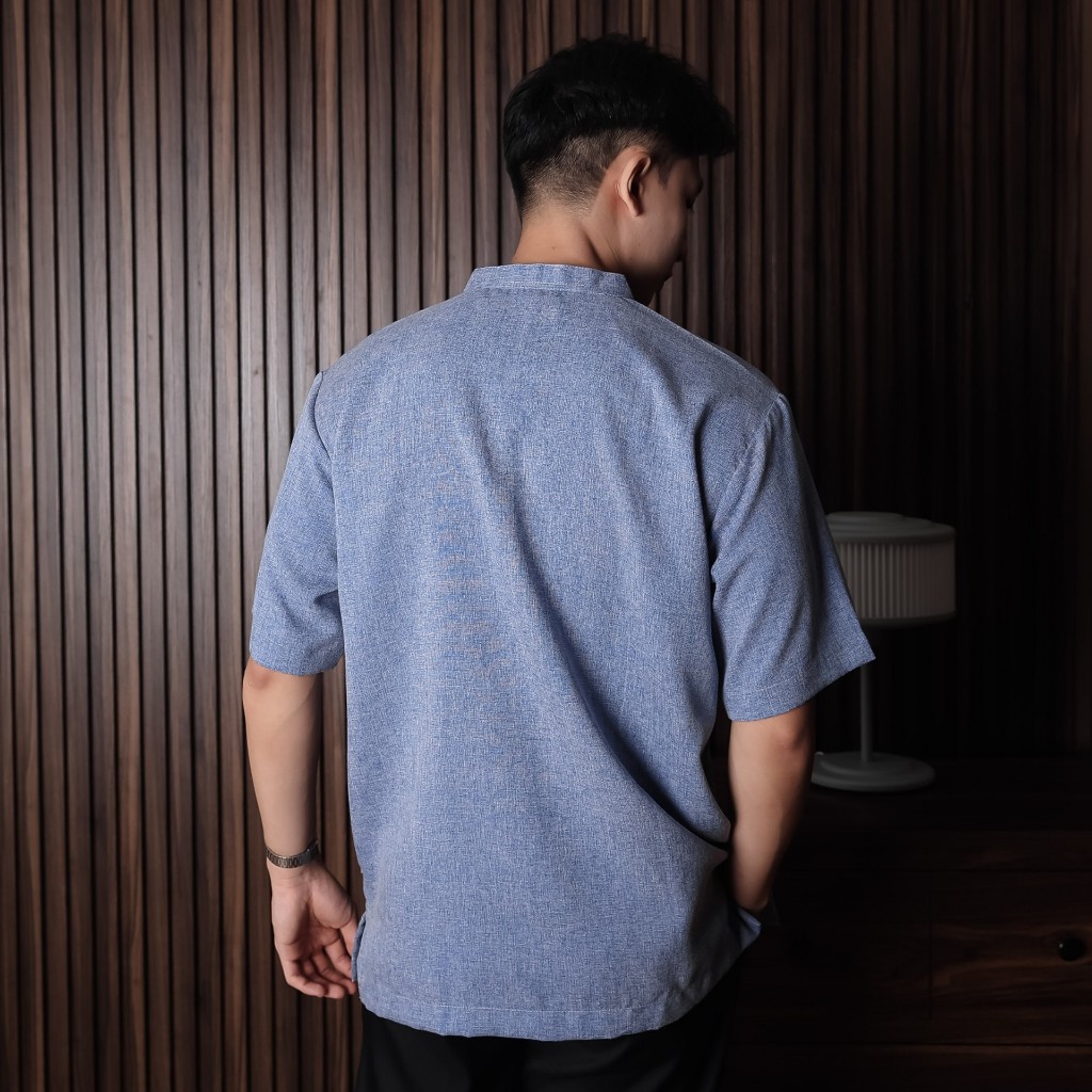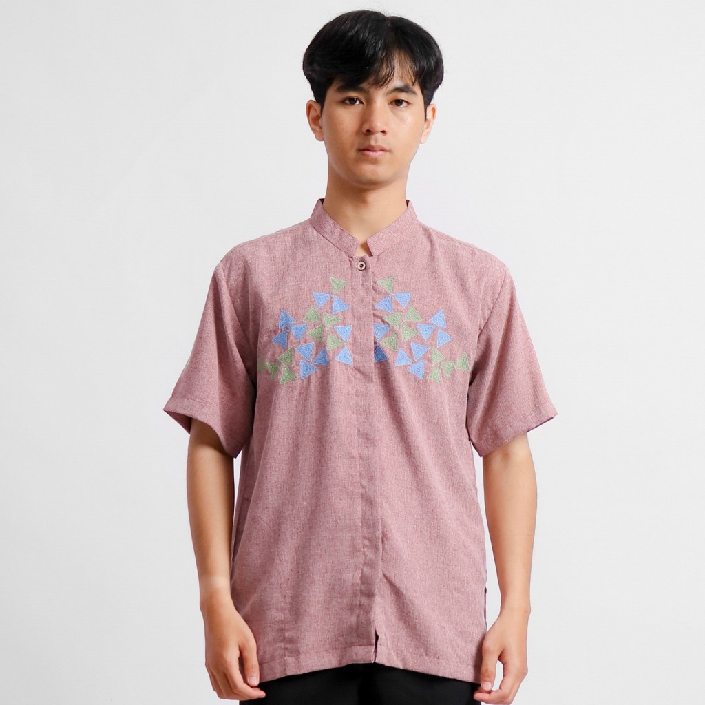 Koko Uzma Baju Koko Bordir Saku Samping Lengan Pendek Biru Hijau Pink