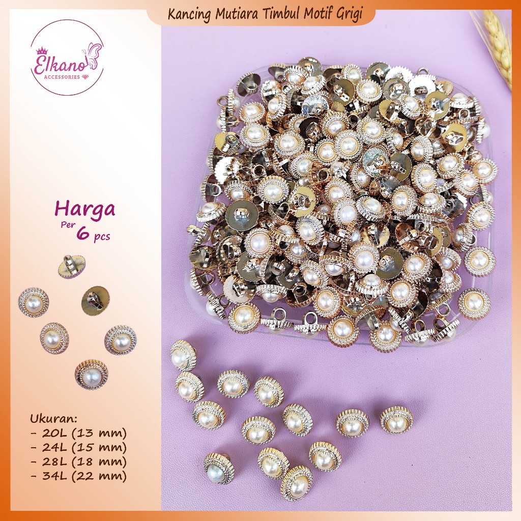 [6 pcs] Kancing Baju Mutiara Timbul Motif Grigi