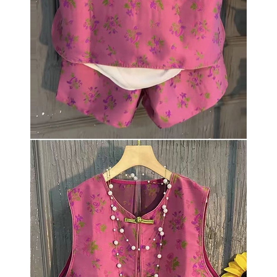 Retro Style Suit Women's Korean-Style Buckle Vest Wide-Leg Shorts