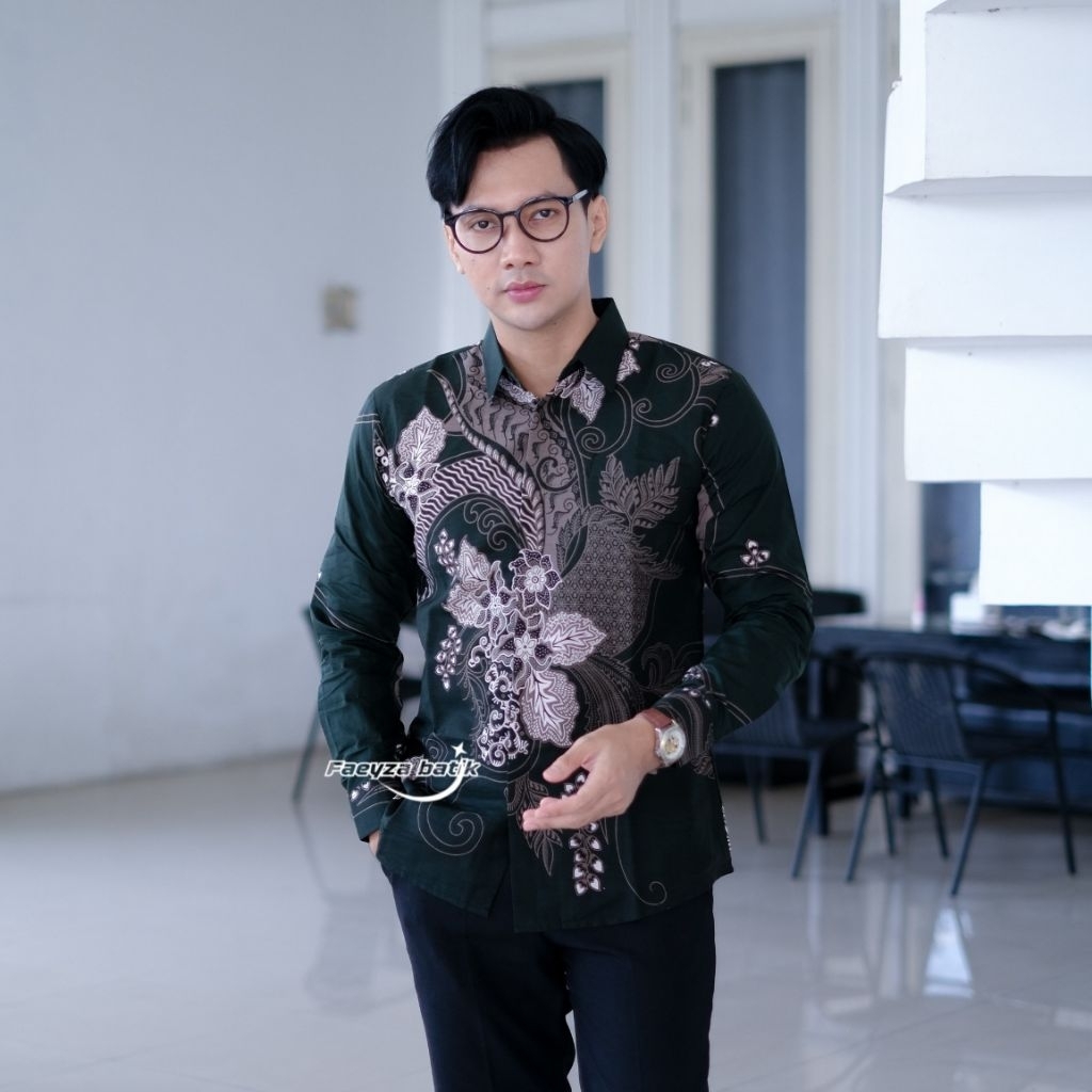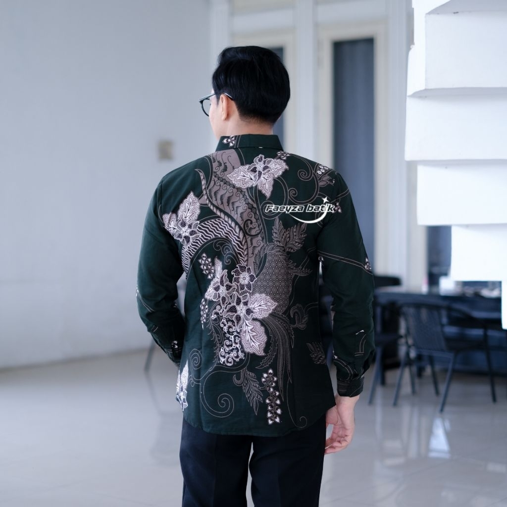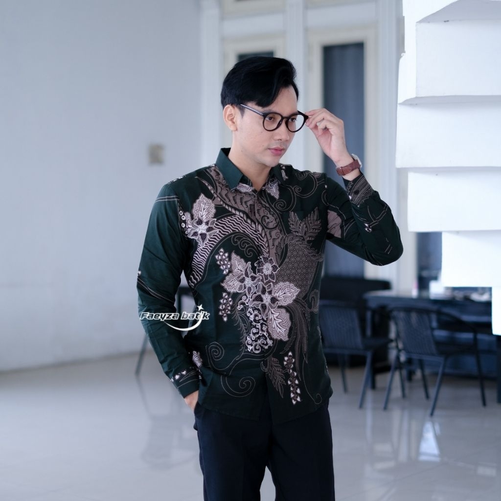 Faeyza Batik Motif MAYORAA Emerald green Baju Kemeja Batik Pria Slimfit Lengan Panjang Pendek Cowok Laki Laki Premium katun Halus Lapis furing