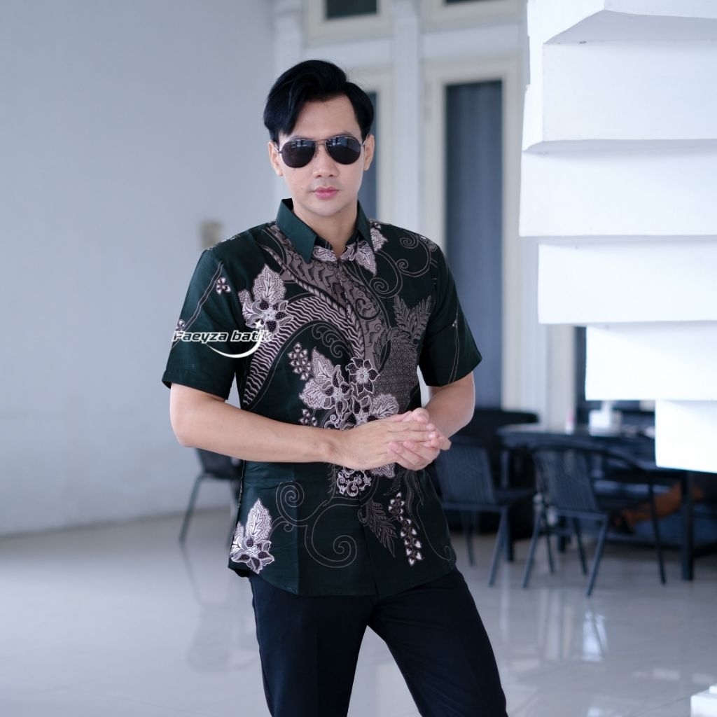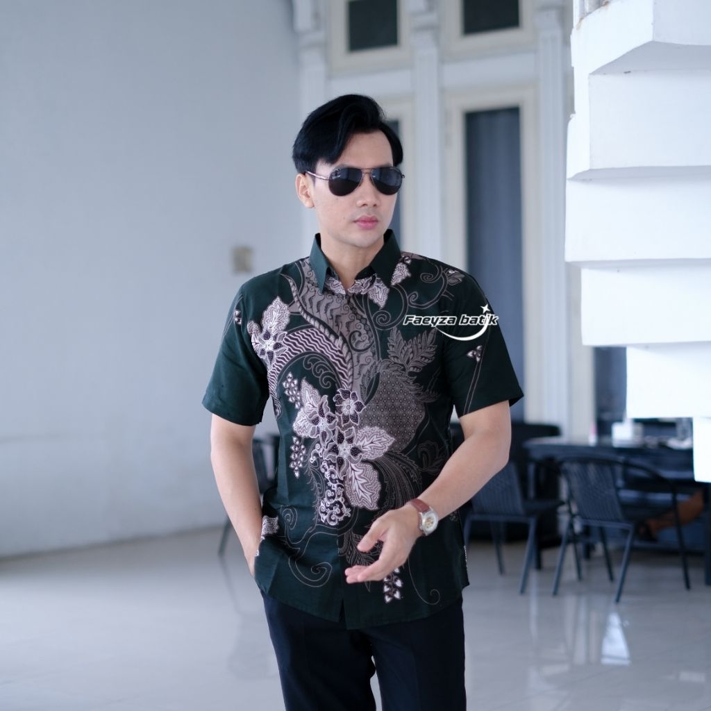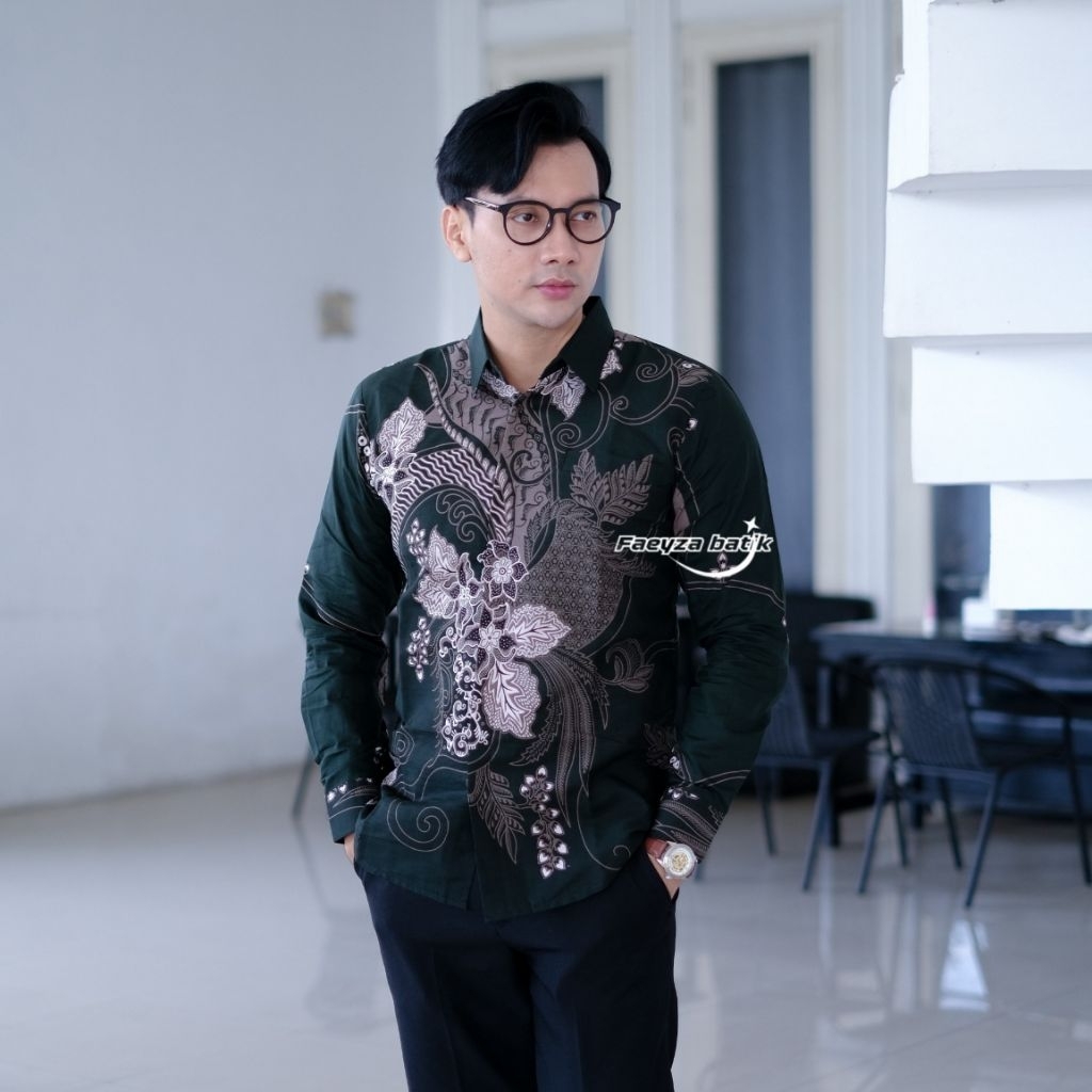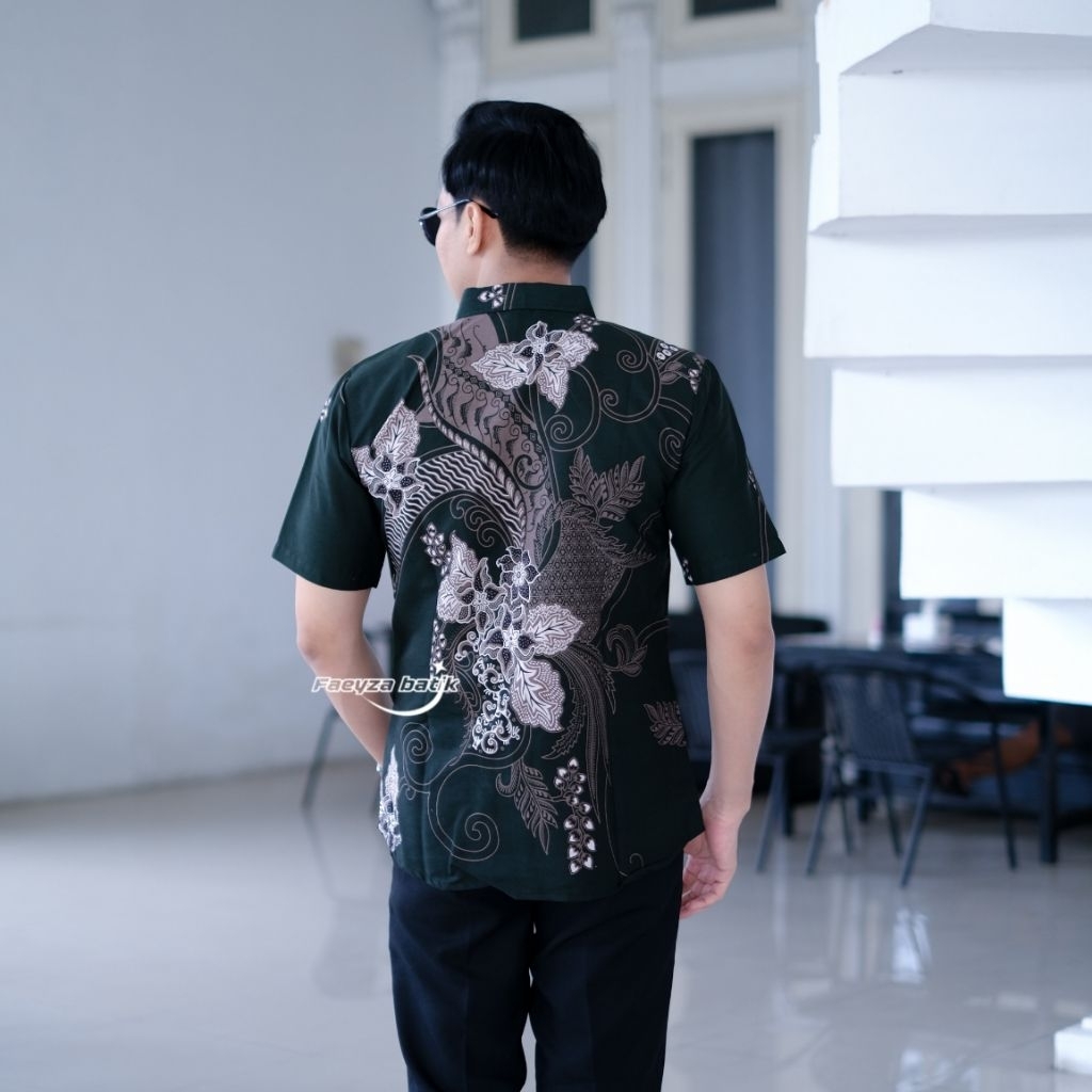 Faeyza Batik Motif MAYORAA Emerald green Baju Kemeja Batik Pria Slimfit Lengan Panjang Pendek Cowok Laki Laki Premium katun Halus Lapis furing