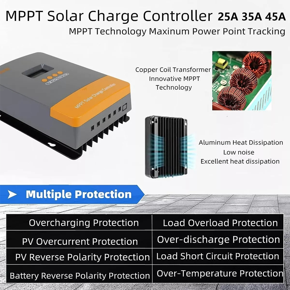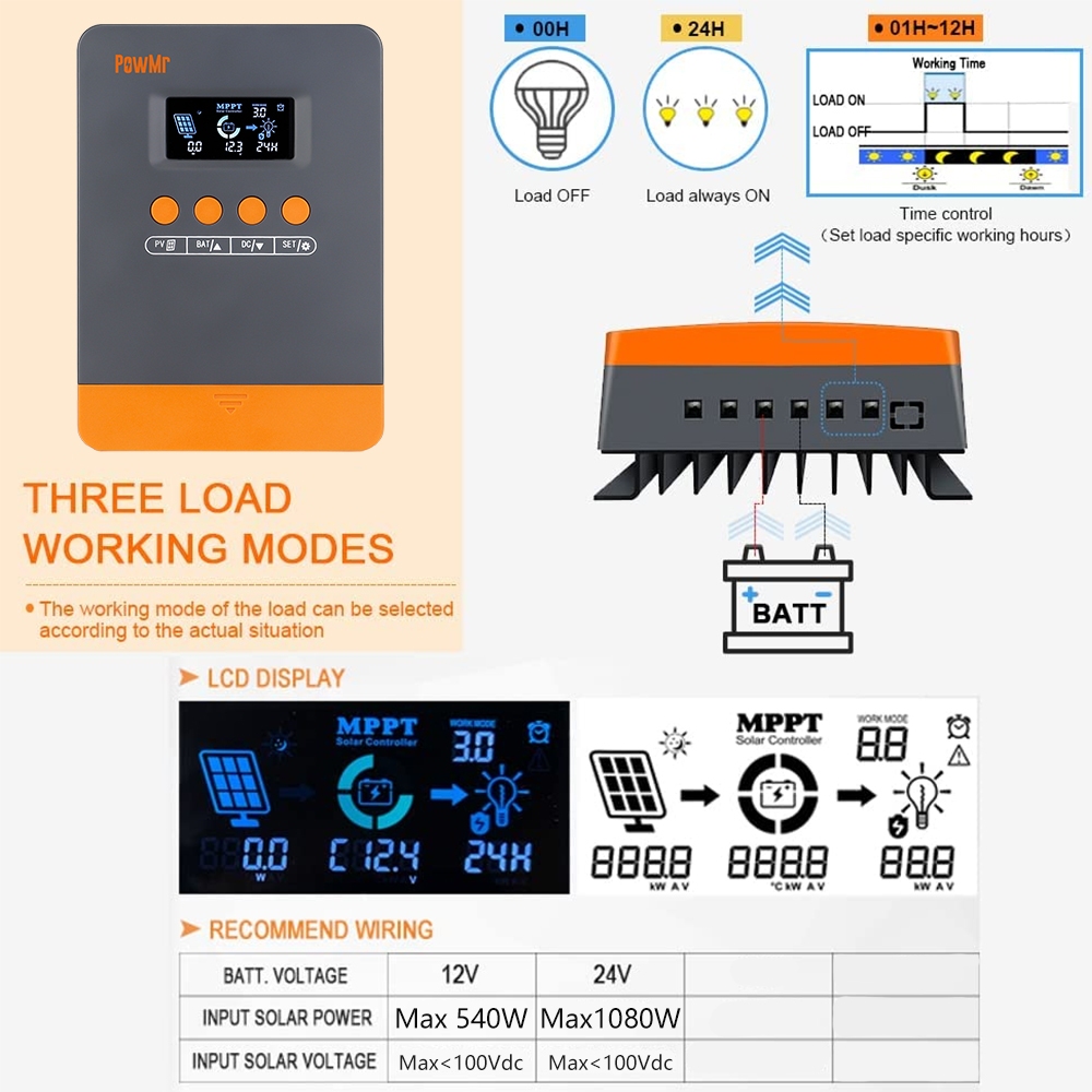 PowMr 25A/35A/45A MPPT Solar Charge Controller 12V 24V Intelligent Charge Protection LCD Display Maximum Photovoltaic Input 100VDC mendukung Lifepo4 Battery Efficient Charge