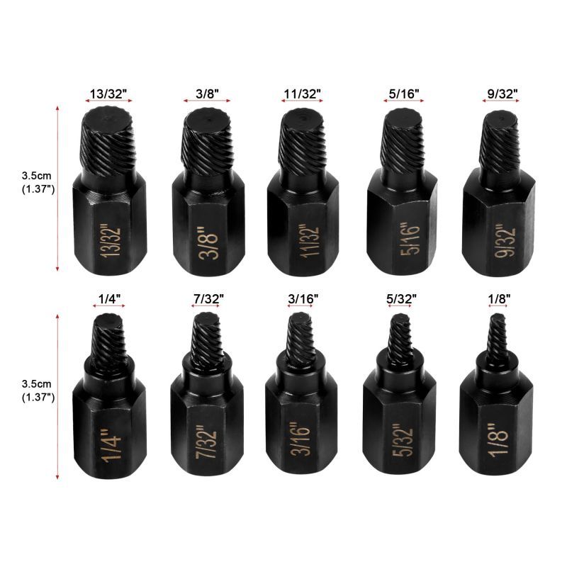 10pcs Pembuka Baut Alat Pembuka Baut Rusak Patah Multifungsi Screw Extractor Set