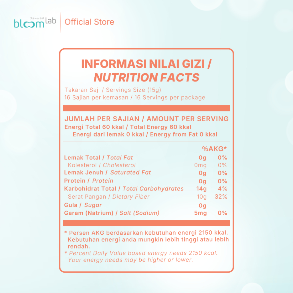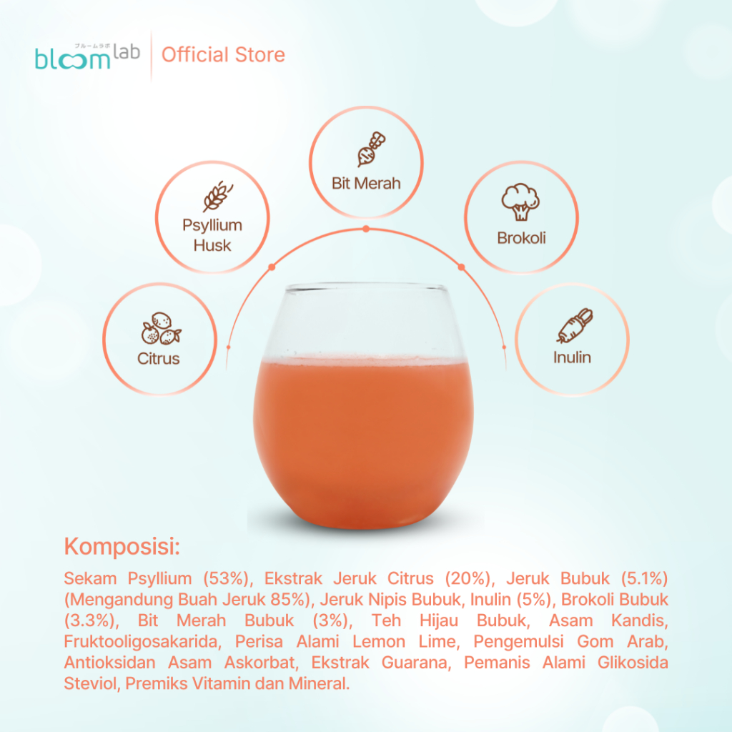 MetaBloom 1 Box (16 Sachet) Minuman Fiber Tinggi 10g Serat Pangan Rasa Jeruk Citrus.