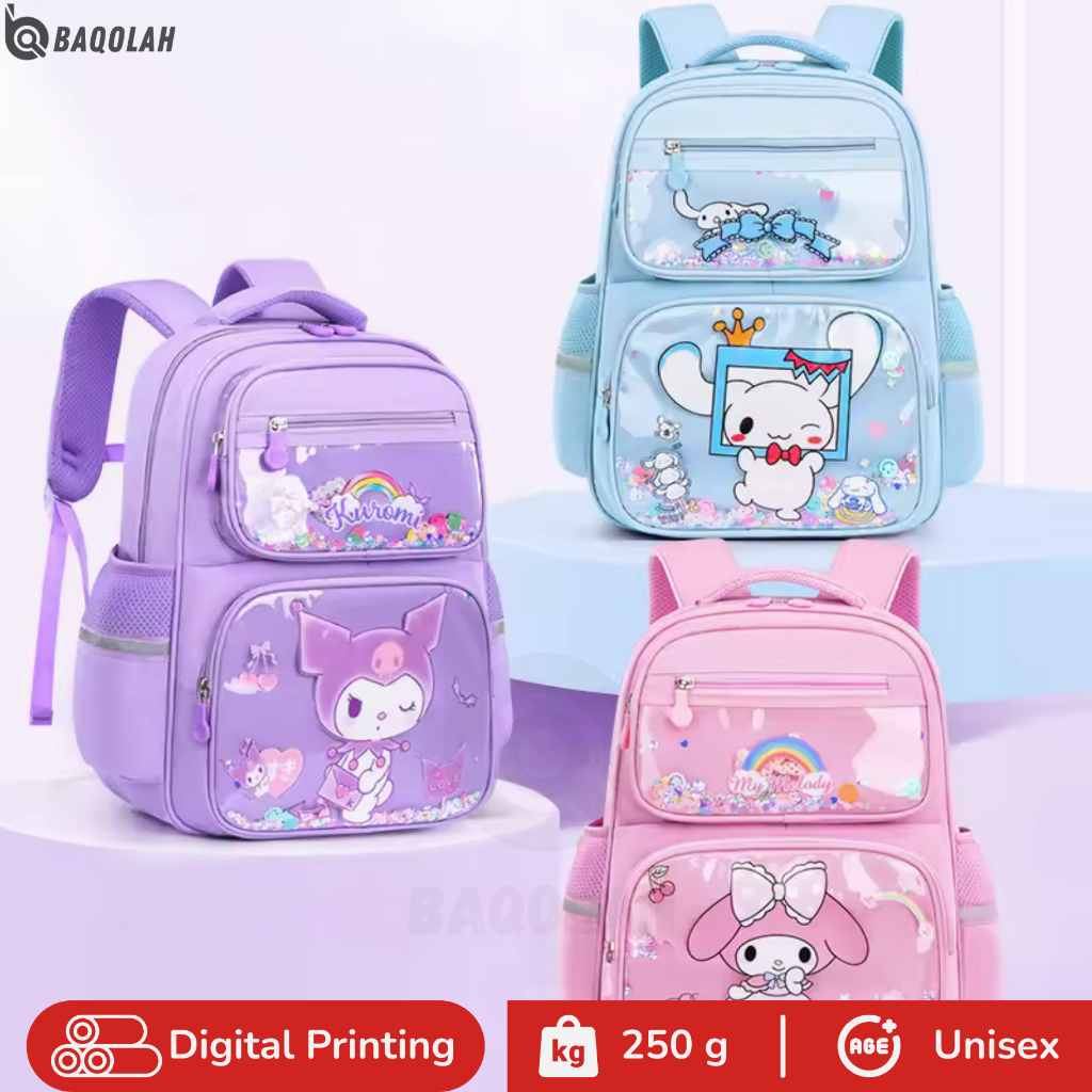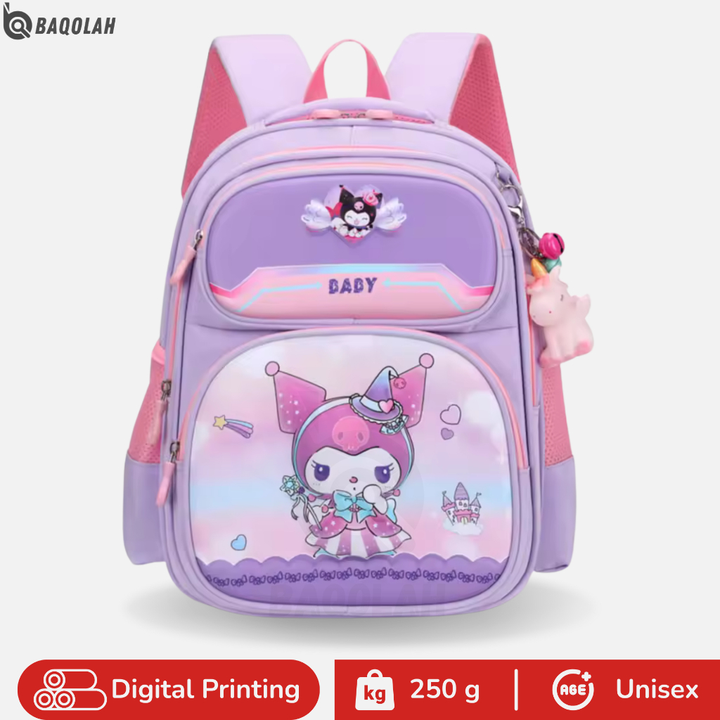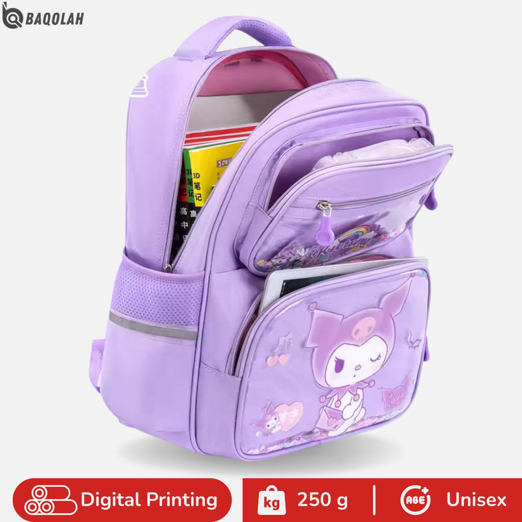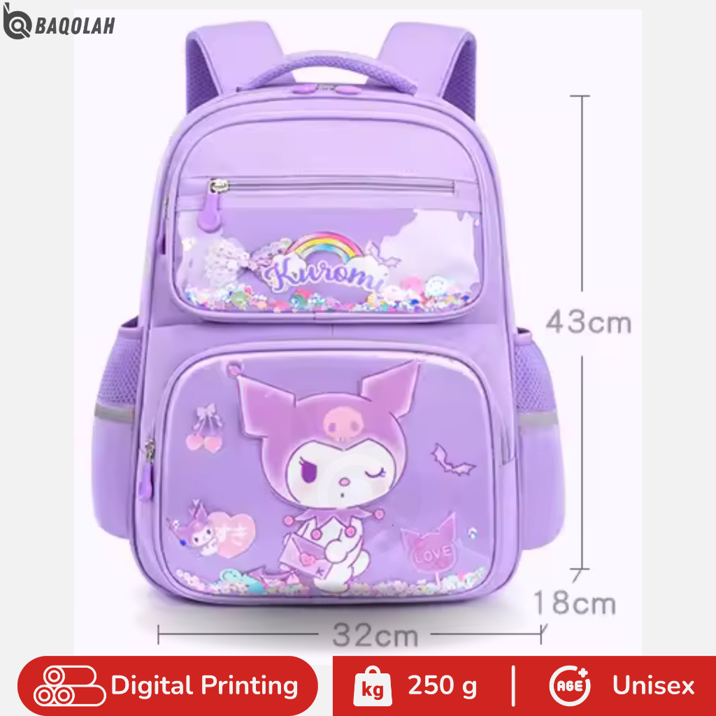 BAQOLAH Tas Ransel Anak Kuromi All Rainbow R057BQ Warna Ungu Large Capacity