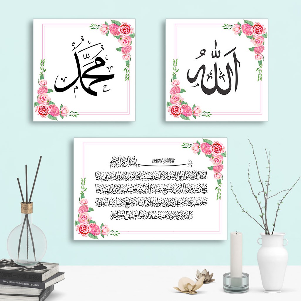 Walldecor Kaligrafi Hiasan Dinding Shabby Lafadz Allah Muhammad Dan Ayat Kursi - KFL2