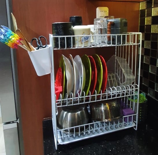 [expedisi] Rak piring besi 3 susun + tadahan + tempat sendok