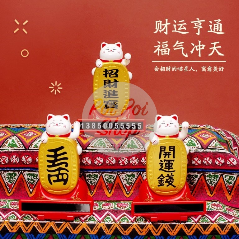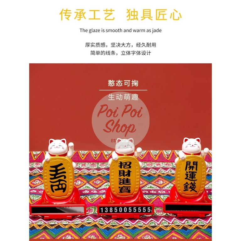 Kucing Hoki Pajangan Mobil Maneki Neko Tugu Gongxi 13cm Dashboard Solar Hoki Terbaik Berkualitas
