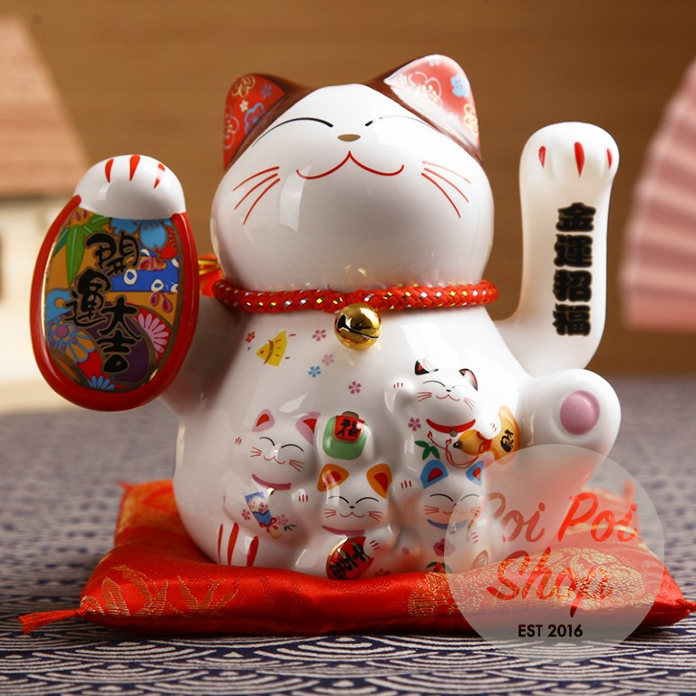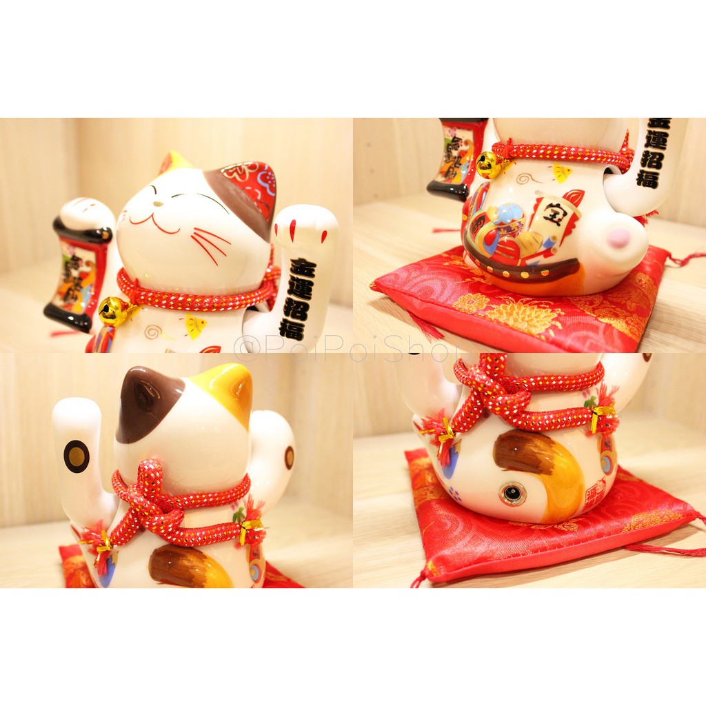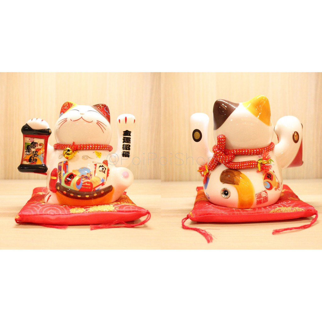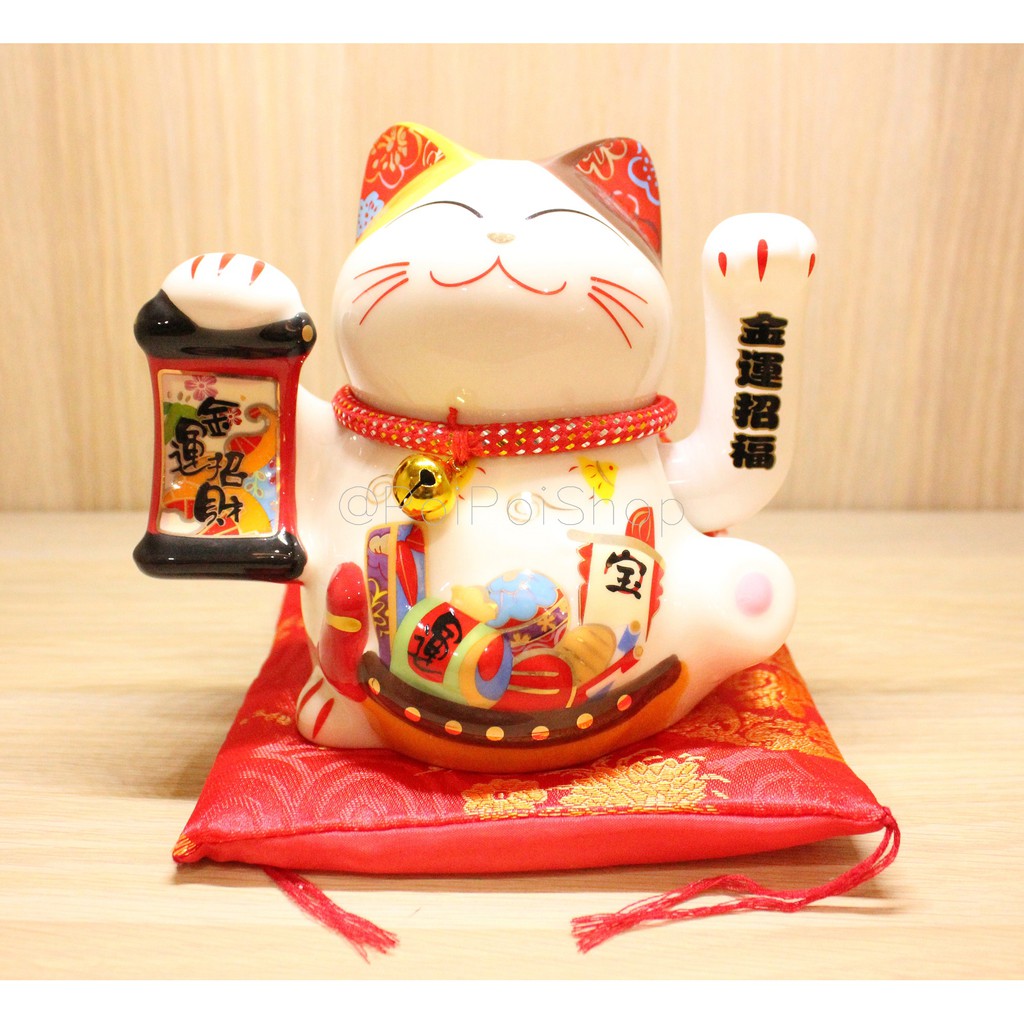 Patung Pajangan Boneka Kucing Hoki Sedang 16cm Lucky Cat Maneki Neko Body Keramik Limited Eksklusif