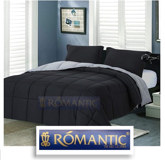 Two Tone Bedcover set hitam x abu by ROMANTIC 180 x 200 all varian size katun jepang adem halus
