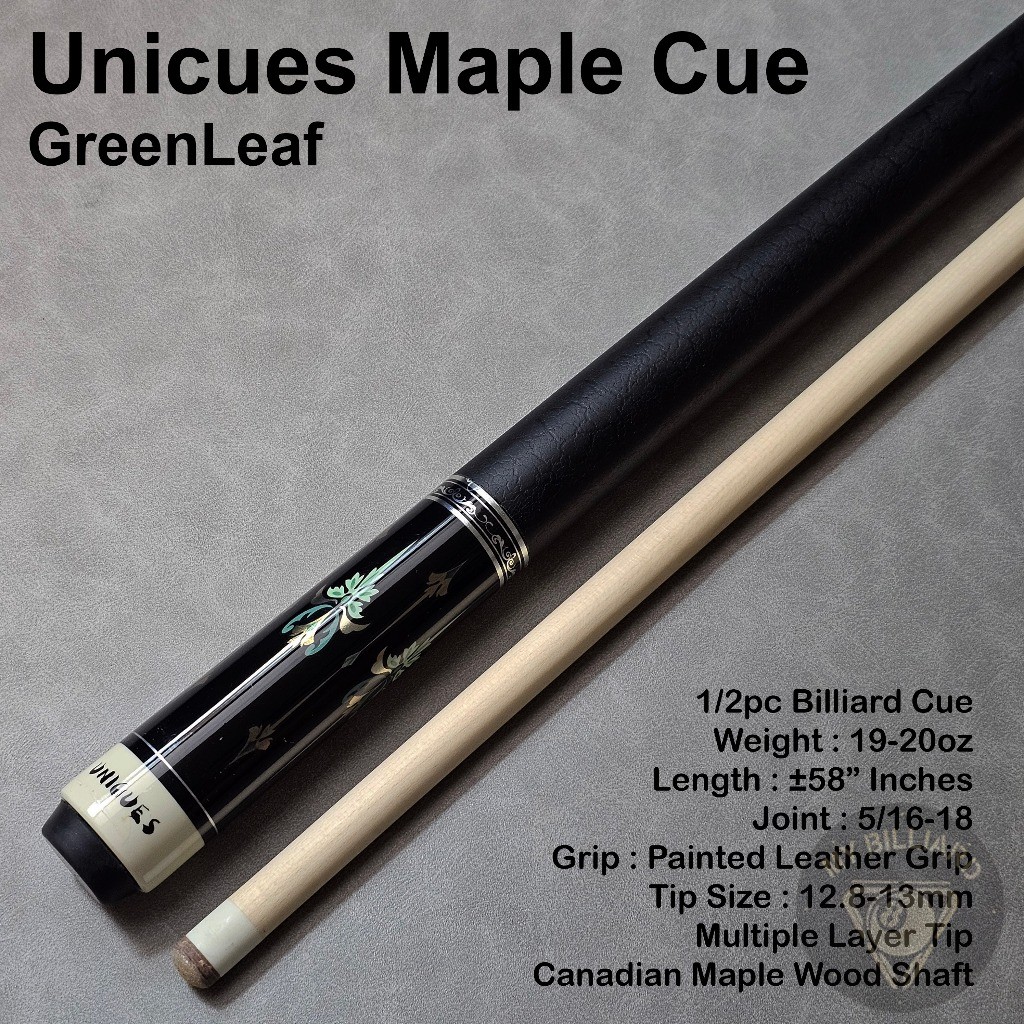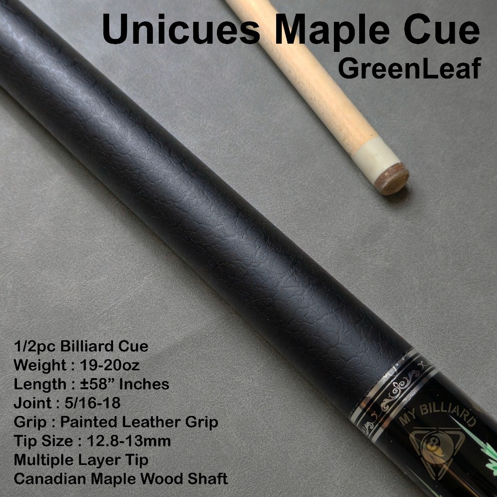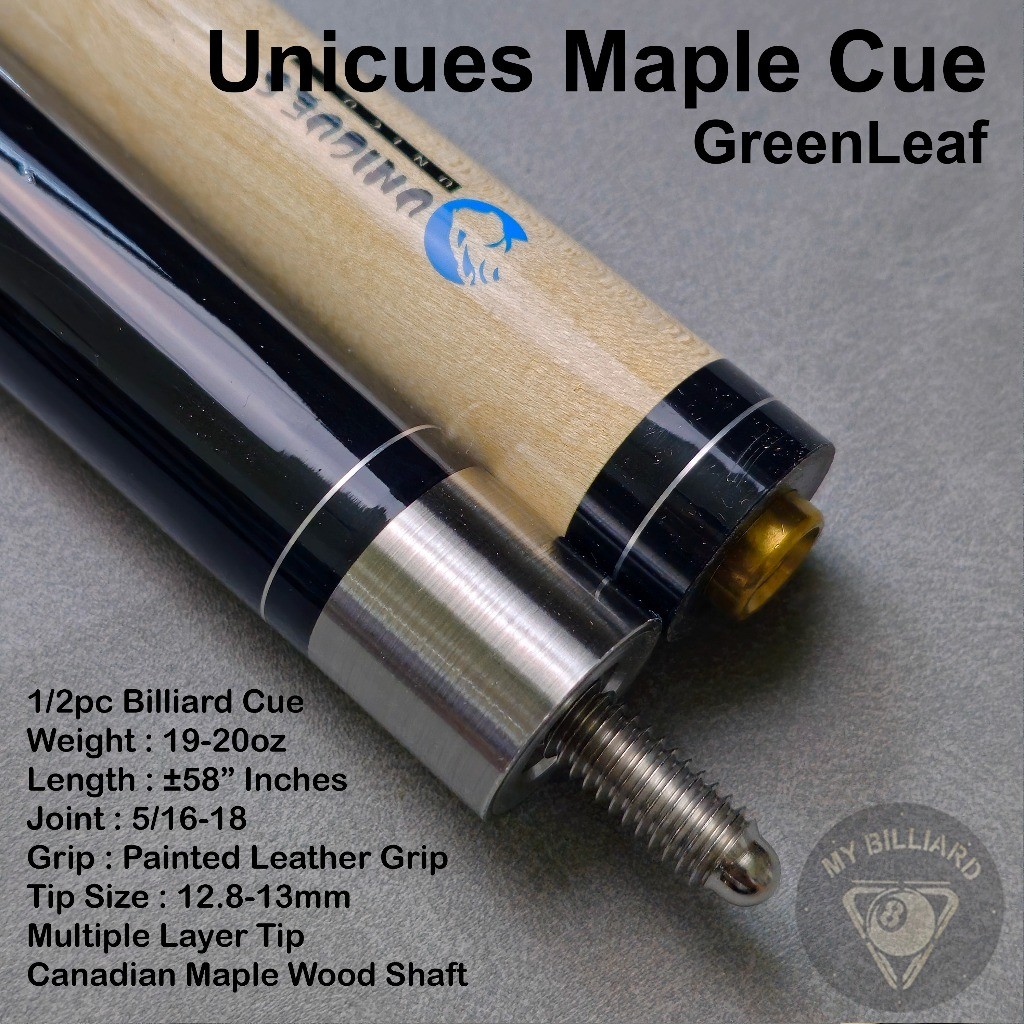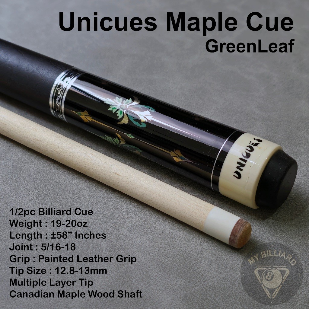 Stick Billiard Unicues Green Leaf Cue Stick Billiard 13mm - Stik Billiar Maple UniCue 13 mm Hijau