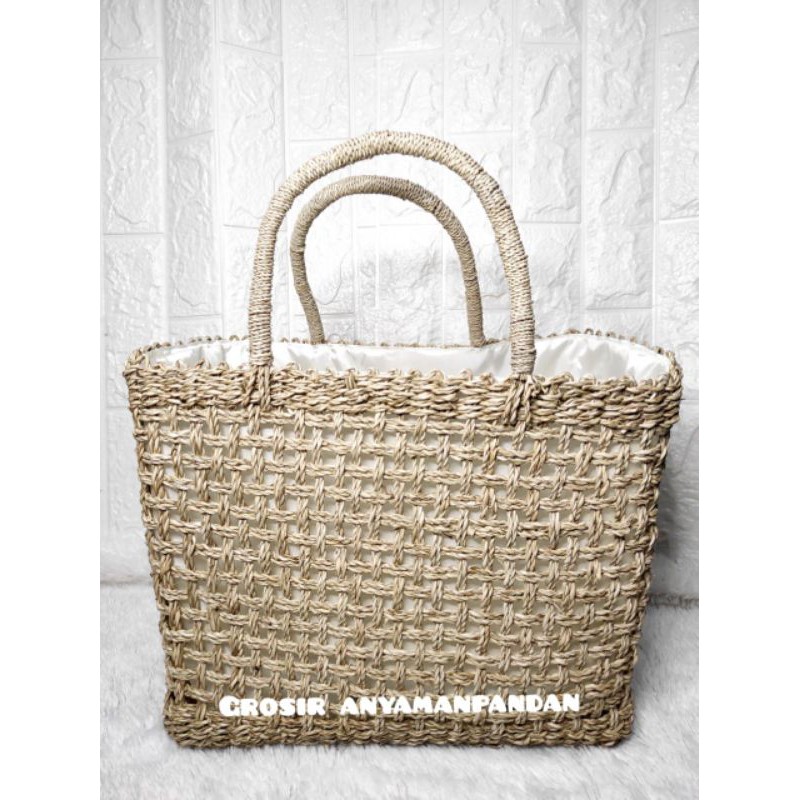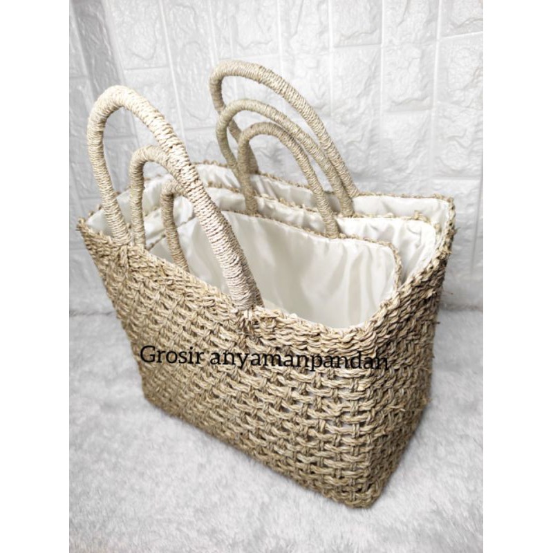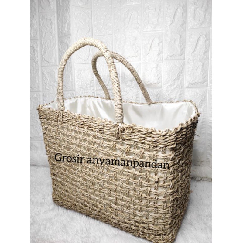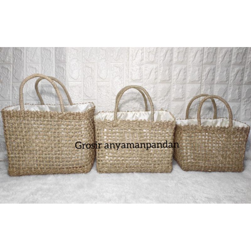 Tas Pandan RARA KOTAK POLOS NATURAL / Tas Anyaman / Tas Mendong / Tas Etnik