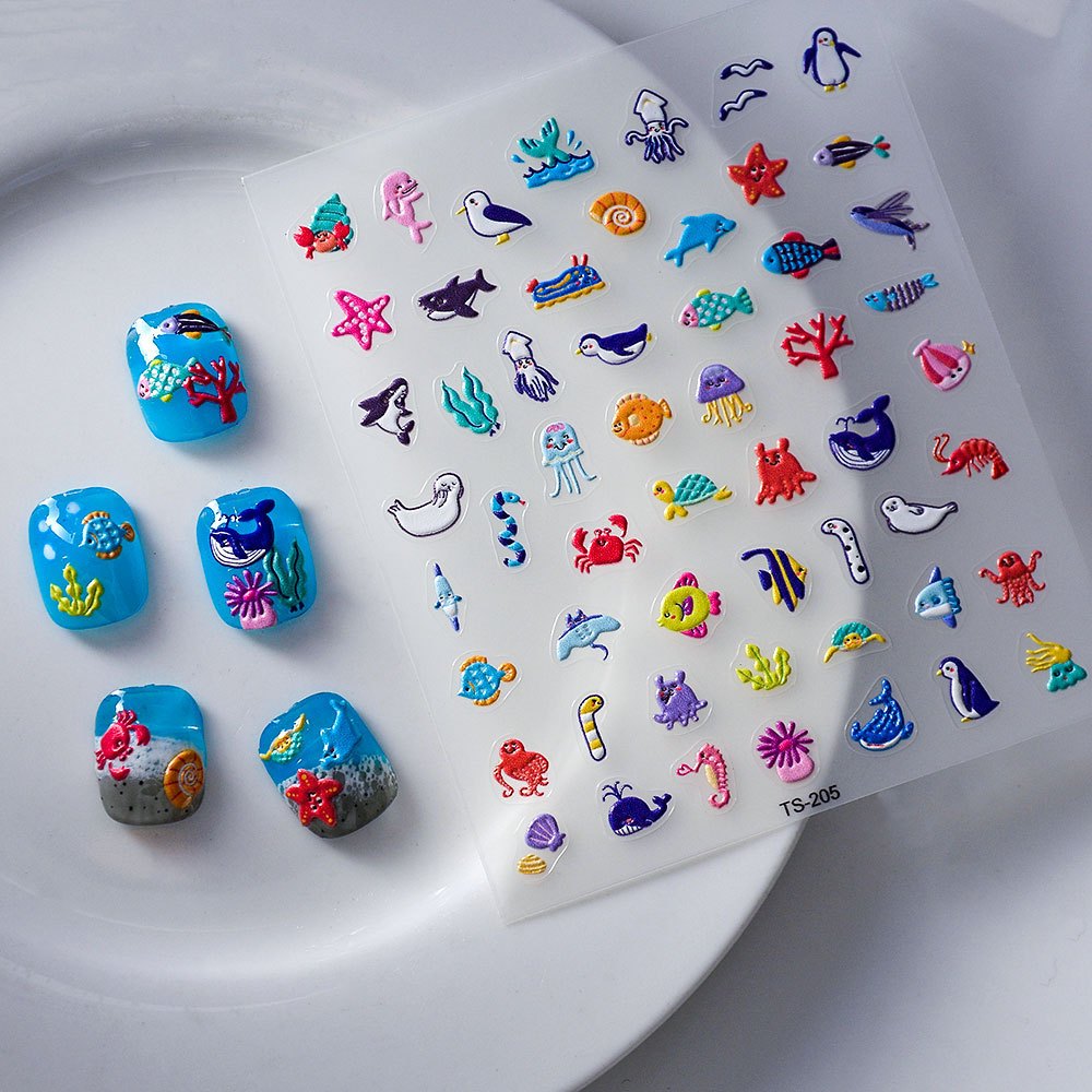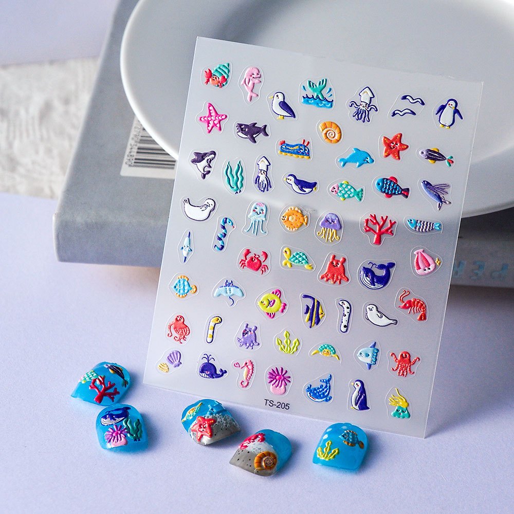 Stiker Kuku 3D Hewan Laut Nail Sticker Nail Art Lumba-lumba Turtle Ikan Hiu Sea Horse Kuda Laut Dolphin Fish Cute
