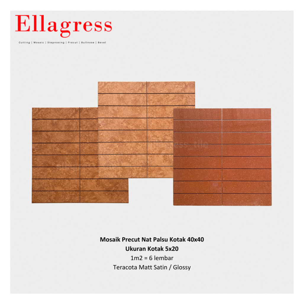 Ellagress Mosaik Precut Nat Palsu Kotak Keramik 40x40 TERACOTA (harga per lembar)