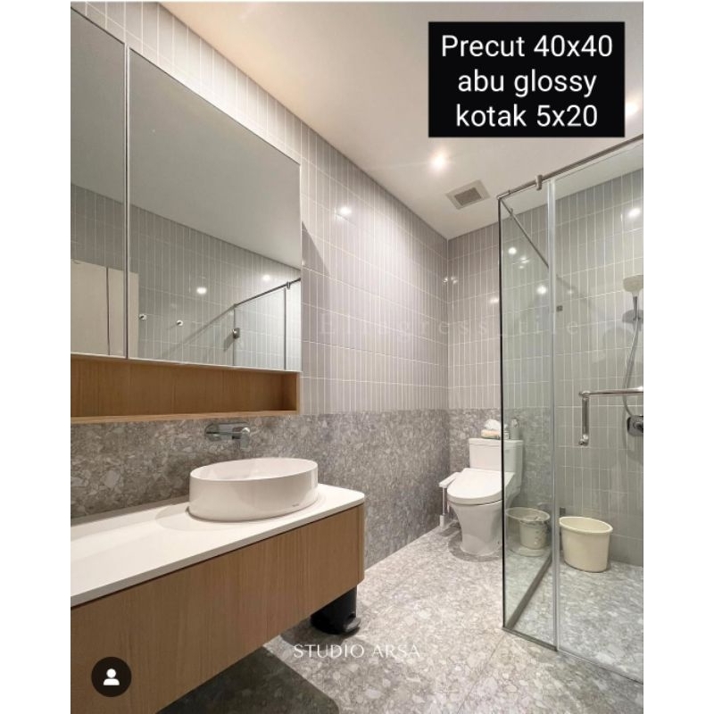 Ellagress Mosaik Precut Nat Palsu Kotak Keramik 40x40 ABU BEIGE (harga per lembar)