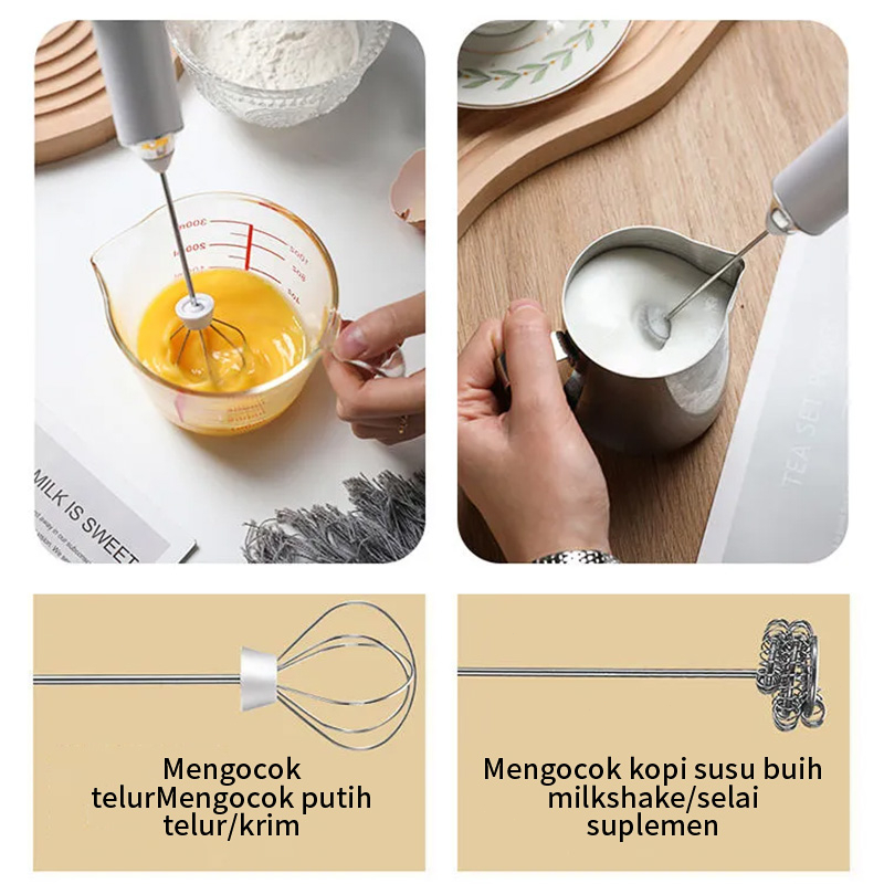Portable Usb Electric 1500Mah Blender Frother Handheld Susu Milk Pengocok Pembuih Telur Rechargeable